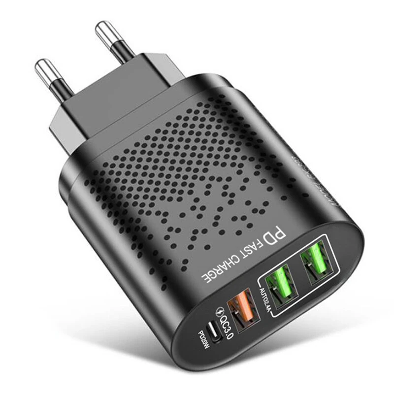 Specifications BrandUSLIONColor375 PDSize85 50 30mmInterface3USB A USB CInputAC100 240V 50 60Hz 0 5AOutput5V 4A 9V 2 4A 12V 1 8AProtocolsPD QC3 0 AFC FCPTypeEU PlugPower20WFeatures 1 Versatile Charging This charger features 3 USB A ports and 1 USB C port allowing you to charge multiple devices simultaneously 2 Fast Charging With an output of 5V 4A 9V 2 4A and 12V 1 8A this charger provides fast and efficient charging for your devices 3 Universal Compatibility This charger supports multiple protocols including PD QC3 0 AFC and FCP making it compatible with a wide range of devices 4 Compact Design The compact size of 85 50 30mm makes this charger portable and convenient for travel or everyday use 5 Reliable Performance With a high quality construction and reliable power delivery this charger ensures safe and efficient charging for your devices Package Include 1x USLION 20W Charger