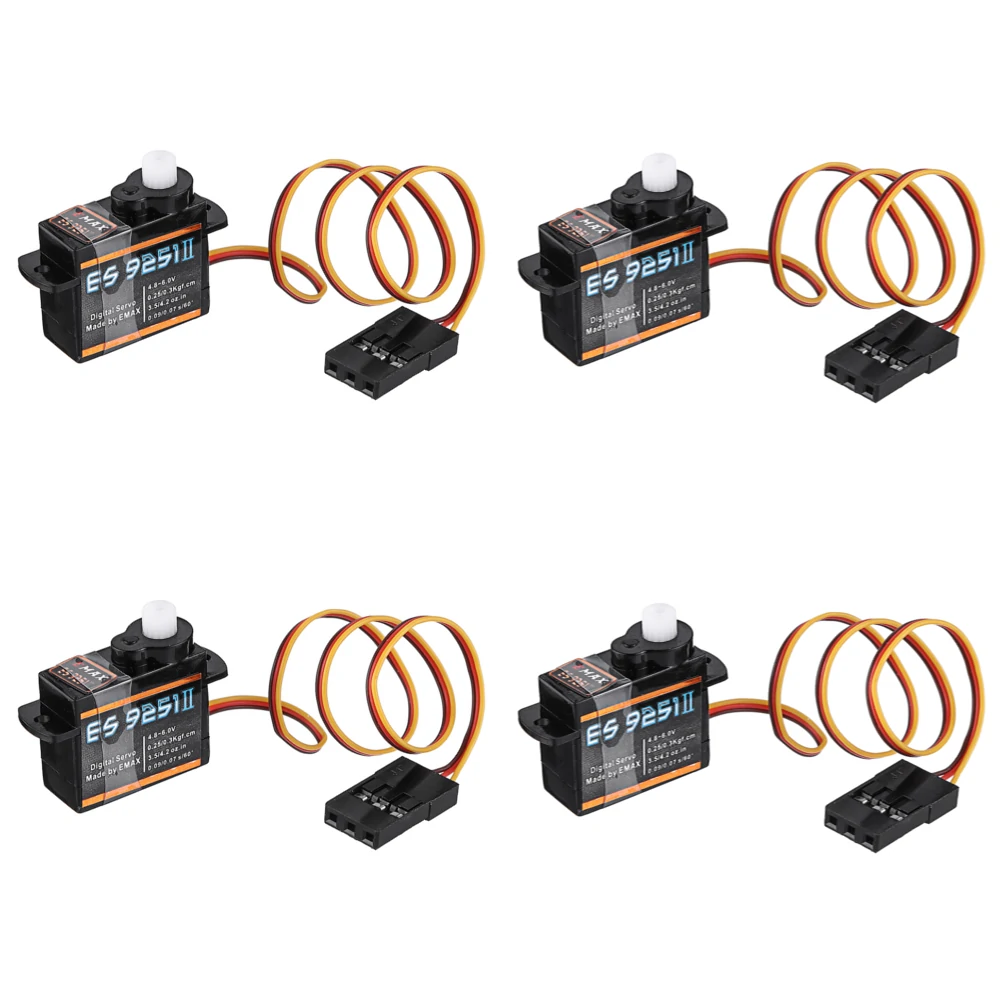 설명:브랜드: Emax품목: ES9251 II 디지털 서보작동 전압: 4.8V~6.0V운전 속도 (부하 없을 때): 0.09 초/60° (4.8v), 0.08 초/60° (6.0v)작동 전류 (부하 없음): 25mA Max (4.8v), 315mA Max (6.0v)스톨 토크: 0.25kg.cm Max(4.8v), 0.3kg.cm Max(6.0v)최대 전류: 120mA Max (4.8V), 140mA Max (6.0V)유휴 전류: 2.2mA저장 온도 범위: -20°C~70°C작동 온도 범위: -10C~60C크기: 25.49*8.25*20.25mm무게: 3.0±0.5g커넥터 와이어 게이지: JR커넥터 와이어 길이: 180 ± 8mm꽃 머리: 15T베어링: 아니요기어 종류: 1개의 금속 기어 + 5개의 플라스틱 기어극각: 360°제어 시스템: PWM운전 이동: 90°±10° (1000-2000 마이크로초일 때)중립 위치: 1500 μ초회전 방향: 반시계 방향 / 펄스 이동 1500에서 1900μ초펄스 폭 범위: 700-2300 μ sec최대 이동 거리: 145°±10° (700-2300μ 초)사용법: RC 비행기, RC 항공기, RC 헬리콥터용영어 매뉴얼 여기를 클릭하세요포함된 패키지:4 x ES9251II 디지털 서보