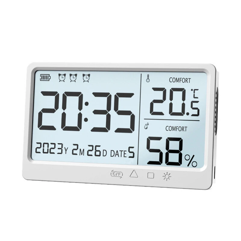 هذا هو نوع من الساعات ذات الجودة العالية ، عرض شاشة LCD ، يعرض الوقت والتقويم والأسبوع ودرجة الحرارة والرطوبة وما إلى ذلك بوضوح. حساسات درجة الحرارة والرطوبة عالية الدقة المختارة ، تتيح لك معرفة حالة الطقس بوضوح. يمكنك تجربته.الميزات:1. قياس درجة الحرارة والرطوبة في الداخل والخارج ، تحويل مئوية وفهرنهايت.2. حجم الشاشة كبير حتى يمكن لكبار السن رؤية الأوقات.3. العرض درجة الحرارة حتى تتمكن من الإحساس به دون النظر إلى توقعات الطقس.4. عندما تكون البطارية منخفضة ، يتم عرض أيقونة ، بحيث يمكنك شحنها في الأوقات.5. مع وظيفة التنبيه ، لا داعي للقلق بشأن النوم الزائد.مواصفات المنتج:رقم الموديل: MY-13مدى الاستقرار الداخلي والخارجي للقياس: -10 ~ 50 ℃دقة قياس درجة الحرارة: ± 1 ℃دقة الدقة: 0.1 ℃نطاق قياس الرطوبة: 10٪ RV ~ 95٪ RVدقة قياس الرطوبة: ± 5٪ RVقرار الرطوبة: 1٪ القرار: 1٪فترة قياس درجة الحرارة / الرطوبة: 2 ثانيةوضع العرض: شاشة LCDالجهد التشغيلي: 3.7 فولتمصدر الطاقة البطارية: 300 مللي أمبيرحجم العنصر: 125 * 77 * 16 مم / 4.9 * 3.0 * 0.6 بوصةوزن العنصر: 78 جرام / 3.1 أوقيةحجم العبوة: 160 * 90 * 20 مم / 6.3 * 3.5 * 0.8 بوصةوزن الحزمة: 110 جرام / 4.3 أوقيةقائمة التعبئة:1 * مبكرة1 * كابل USB1 * دليل المستخدم الإنجليزي