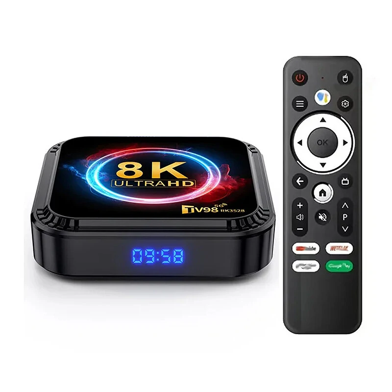 Özellikler:ModelTV98CPUDört Çekirdekli ARM Cortex A53cpuRk3528 Quad Core ARM Cortex -A53 @2.0GHZGPUMali-450İşletim SistemiAndroid 13.0, 64 bit işletim sistemiBellek2GBFlash16GBWiFiIEEE 802.11 a/b/g/n 2.4G/5GbluetoothBT 5.0I/O1*HD: 4K*2K UHD Çıkışı1*AV: Destek2 * USB: 1 * USB 2.0, 1 * USB 3.01* IR Alıcı: Uzaktan alıcıyı bağlayın1*RJ45: Ethernet Arayüzü; 100M desteği1*TF KARTI: 4GB/8GB/16GB/32GB/64GB/128GB/256GB desteği1 * DC: 5V/2AÖzellikler: Güçlü Performans: Dört Çekirdekli ARM Cortex A53 CPU ve Mali-450 GPU ile donatılmış olan TV98, sorunsuz işlem ve çoklu görev için hızlı ve verimli işlem gücü sağlar.2. Gelişmiş İşletim Sistemi: Android 13,0'da çalışan TV98, geniş bir uygulama, oyun ve yayın servislerine erişim sağlayan kullanıcı dostu bir arayüz sunar.3. Hatırı sayılır Bellek ve Depolama: 2GB RAM ve 16GB flaş bellek ile TV98, hızlı ve sorunsuz yükleme sağlarken, favori uygulamalarınız, filmleriniz ve dosyalarınız için yeterli depolama alanı sunar.4. Sorunsuz Bağlantı: TV98, çift bant WiFi (2.4G / 5G) ve bluetooth 5.0'ı destekleyerek güvenilir kablosuz bağlantılar ve diğer cihazlarla kolay eşleştirme imkanı sunar.5. Çok Yönlü Medya Oynatma: 4K*2K UHD çıkışıyla HD üzerinden şaşırtıcı görseller sunan TV98, çeşitli medya formatlarını destekleyerek akış yapmak, oyun oynamak ve çoklu ortam eğlencesi için mükemmeldir.Paket İçeriği:1x TV98 TV Box1x HD Kablosu1x Sesli Kumanda1x Kullanıcı Kılavuzu1x Paket kutusu1x Güç Adaptörü