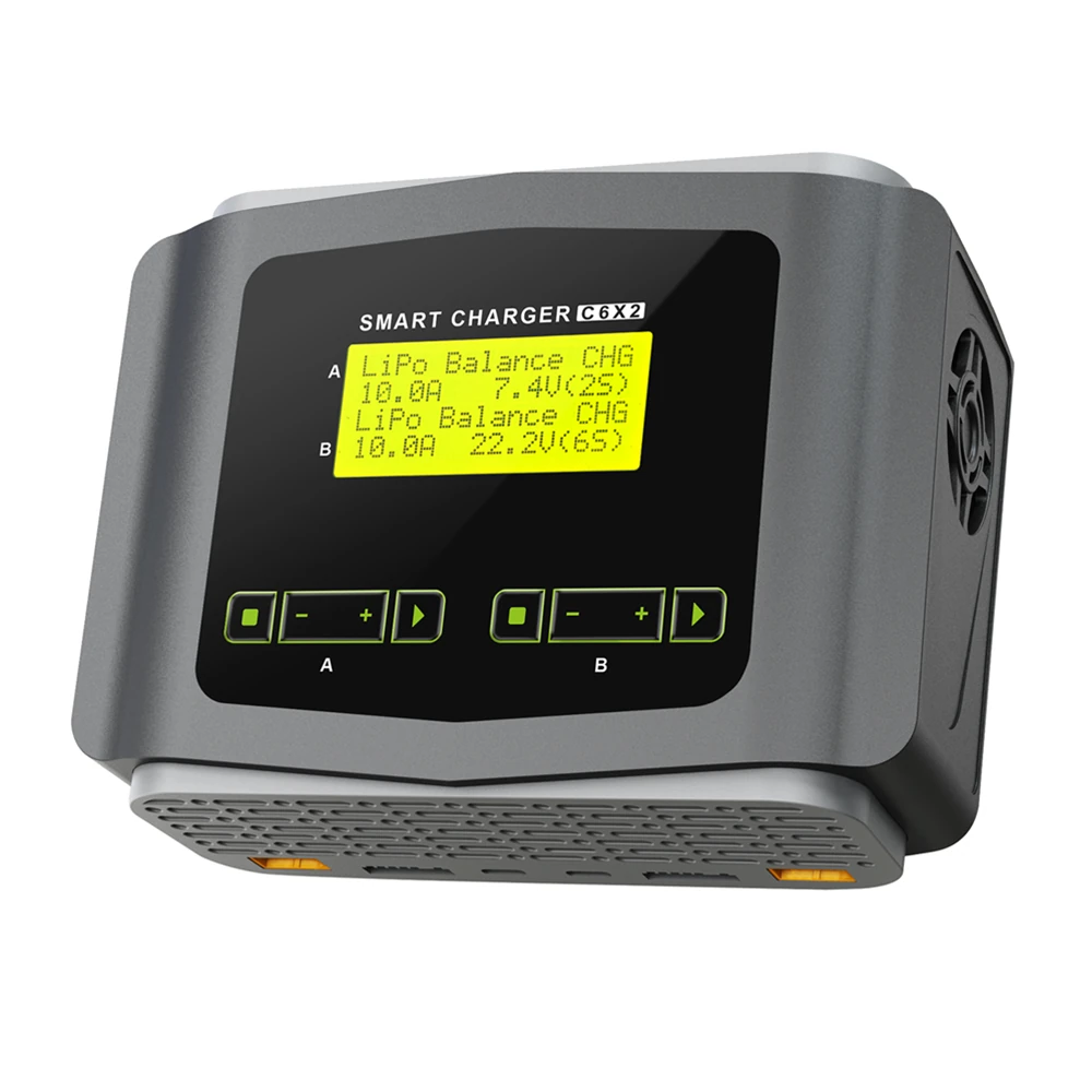 Spécifications:Marque: HTRCModèle : C6X2AC MAX 240V | DC MAX 18VChargeur: AC CHA/B 150W | DC 120W*2Courant de charge : MAX 10A*2Dimensions : 17*12*6 cmType de batterie: LiPo/LiFe/Lilon :1~6SNiCd/NiMH :1~15SPB/SLA:2~20VForfait inclus:1x HTRC C6X2 chargeur Lipo