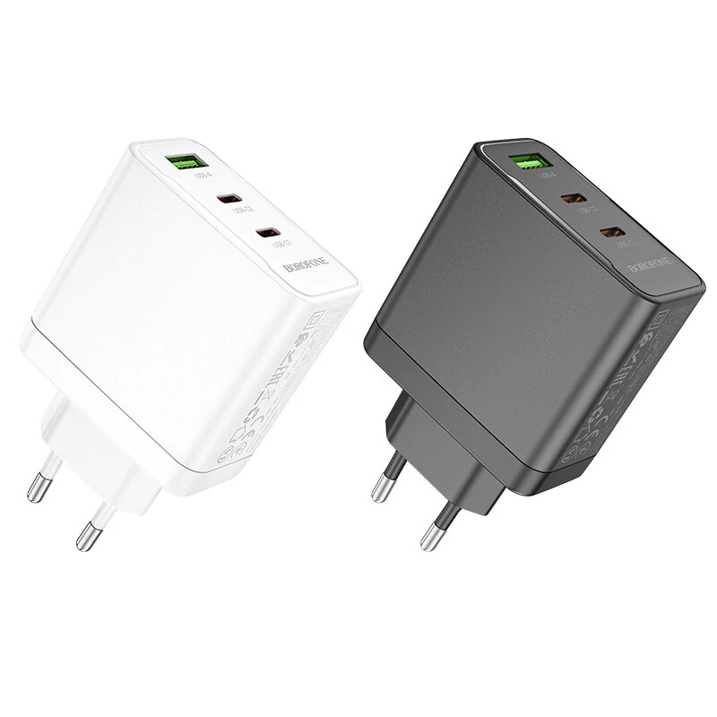 Specifiche:MarchioBOROFONEModelloBN12ColoreNero/BiancoInterfacciaUSB-A+2USB-COra pronto a tradurre il testo inglese nel seguente modo: """IngressoAC110-240V 50/60Hz 1.5A MassimoRisultatoUSB-C1/2: 5V=3A 9V=3A 12V=3A 15V=3A 20V=3.25A (Potenza massima di 65W)PPS: 3.3-11V=5AUSB-A: 5V = 4.5A 9V = 3A 12V = 2.5A 20V = 1.5A (30W Max)Risultato massimo65W MaxProtocolliPD QC3.0TipoSpina EUPotere65WCaratteristiche: 1. Porte USB-C e USB-A doppie: Il caricatore BOROFONE BN12 dispone di due porte USB-C e una porta USB-A, consentendoti di caricare tre dispositivi contemporaneamente.2. Ricarica veloce ed efficiente: le porte USB-C forniscono una potenza massima di 65W, supportando vari livelli di tensione. La porta USB-A offre una potenza massima di 30W. Con i protocolli PD e QC3.0, garantisce una ricarica veloce ed efficiente per i tuoi dispositivi.3. Tecnologia PPS: Il caricatore è dotato di tecnologia PPS, che consente di fornire una potenza di ricarica ottimale a diversi livelli di tensione (3.3-11V = 5A), garantendo la compatibilità con una vasta gamma di dispositivi.4. Compatto e adatto ai viaggi: Con il suo design della spina EU, il caricabatterie BN12 è adatto per l'uso in Europa. Le sue dimensioni compatte lo rendono comodo da portare e ideale per i viaggiatori.5. Sicuro e affidabile: Il caricabatterie BOROFONE BN12 è dotato di diverse funzioni di sicurezza, tra cui protezione da sovratensione, protezione da sovracorrente, protezione da cortocircuito e controllo della temperatura, ga