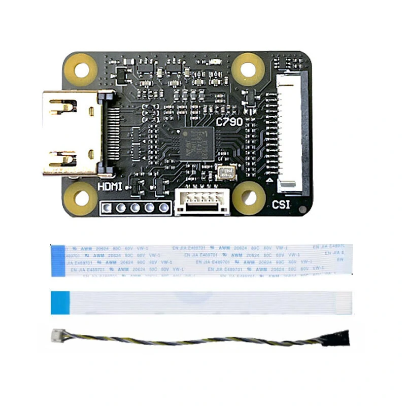 Specifiche:Prodotto: adattatore IN a CSI-2 compatibile con HDMI C790 1080P 60Hz e I2S BliKVM e PiKVMRisoluzione: 1080P 60HzInterfaccia: HDMI-Compatible IN a CSI-2Supporta audio e videoNumero di modello: C790Compatibilità: Compatibile con la serie Raspberry Pi: ZERO/3B/3B+/4B/CM3/CM4Interfaccia CSI-2, con sede FPC a 15 pin, spaziatura 1,0 mm.Interfaccia CSI-2, con sede FPC a 22 pin, spaziatura 0,5 mm.Caratteristiche:Risoluzione ad alta definizione: supporta fino a 1080p a 60Hz, garantendo riproduzione video chiara e fluida.2. Integrazione audio e video: Supporta contemporaneamente audio e video, offrendo un'esperienza utente più coinvolgente.3. Compatibile con Raspberry Pi: Compatibile con vari modelli di Raspberry Pi, offrendo una vasta gamma di applicazioni.4. Ingresso compatibile con HDMI: La funzione di ingresso compatibile con HDMI consente di collegare un dispositivo dotato di una porta di uscita compatibile con HDMI.5. Riduzione della retroalimentazione di energia: La scheda contiene circuiti per prevenire la retroalimentazione di energia, garantendo l'uso sicuro del tuo Raspberry Pi.La confezione include:【C0790 Set】:1x C7901x FPC 15pin 1,0mm1x FPC 22 pin da 0,5 mmCavo I2S 1x【C0790 Set+ Accessorio di montaggio】:1x C7901x FPC 15pin 1,0mm1x FPC 22 pin da 0,5 mmCavo I2S 1x1x Pannello di montaggio2x M2.5x11 Colonna di rame a doppio passaggio8x Viti testa tonda N2.5x42x M2.5x6 Colonna in rame a doppio passaggio【C0779 Imposta】:1x C07791x FPC