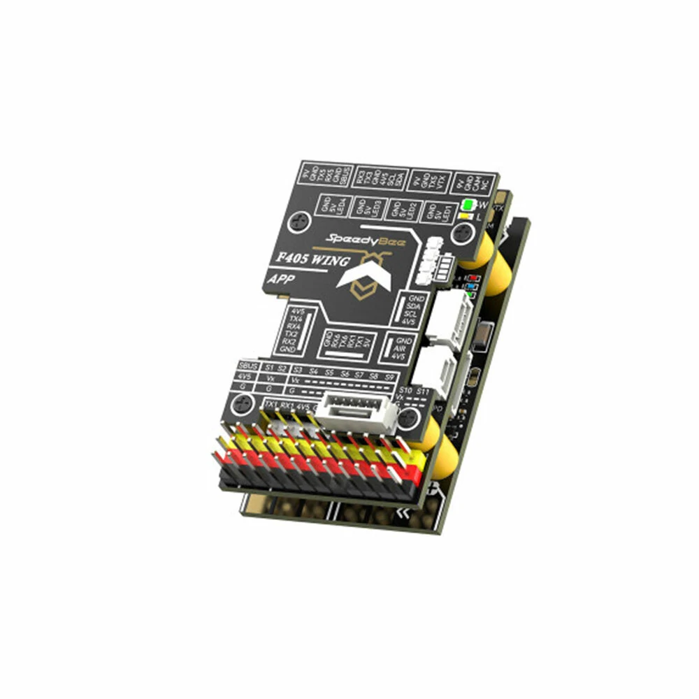 المواصفات:اسم المنتجلوحة SpeedyBee F405 WING FCMCUSTM32F405،168 ميجاهرتز،1 ميجا بايت فلاشIMU (جيرو وتسارع)ICM-42688-PبارومترSPL006-001شريحة OSDAT7456Eصندوق أسودفتحة بطاقة مايكرو إس ديUART6 مجموعات (USART1، USART2، USART3، UART4، UART5، UART6 (مخصصة لاتصال الأجهزة اللاسلكية))I2C1x تستخدم في مagnetometer، مستشعر سرعة الهواء الرقميADC4x (VBAT، التيار، RSSI، سرعة الهواء التناظرية)PWM12x (11+ "LED" pad)جهاز استقبال ELRS/CRSFمدعوم، متصل بـ UART1SBUSمحول مدمج لمدخل SBUS (UART2-RX)LEDثلاثة مرات مصابيح LED لحالة FC (أزرق، أخضر) ومؤشر 3.3 فولت (أحمر) 1 × لون متغيرRSSIمدعومة، مسماة كما رقم RS.ملف تعريف FC المدعومINAV: SpeedyBeeF405WING (افتراضي) ArduPilot: SpeedyBeeF405WINGالوزن8.9gاسم المنتجلوحة SpeedyBee F405 WING PDBنطاق الجهد الإدخالي7 ~ 36V (2 ~ 6S LiPo)مستشعر جهد البطاريةقم بالاتصال باللوحة الأم VBAT ، بنسبة 1K:10K (المقياس 1100 في iNav، BATT_VOLT_MULT 11.0 في ArduPilot) مُستشعَر تيار البطارية90A متواصلة ، 215A قمة قم بالاتصال بلوحة التحكم الطيران الحالي (مقياس 195 في iNav ، 50 A / V في ArduPilot)تي في اسالثنائي المحمينعمناتج FC BECالإخراج 5.2 فولت +/- 0.1 فولت التيار المستمر 2.4 أمبير، ذروة 3 أمبير مصممة لوحدة التحكم في الرحلة، وحدة استقبال، وحدة تحديد المواقع العالمي، وحدة سرعة الهواء، وحدة التليمتري، وشريط WS2812 LEDVTX إخراج BECالمخرج 9 فولت +/- 0.1 فولت تيار مستمر 1.8 أمبير ، 2.3 أمبير القيمة القصوى قابل للتعديل الجهد ، 9 فولت افتراضي ، 12 فولت أو 5 فولت عن طريق القفازمصمم لجهاز الإرسال الفيديو الأنالوجي ، جهاز الإرسال الفيديو الرقمي ، الكاميرا.إخراج محول BEC سيرفوالمخرج DC 4
