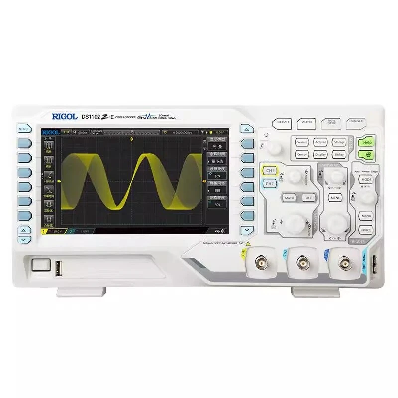Özellikler:Model: DS1102Z-EBant genişliği: 100 MHzKanal: 2 analogGerçek zamanlı örnekleme hızı: 1 GSa/s'ye kadarHafıza Derinliği: 24 Mpts'ye kadarDalga Formu Yakalama Hızı: 30.000 wfms/s'ye kadarDonanım Gerçek Zamanlı Dalga Kaydı: 60.000 kareye kadarGörüntü: 7 inç WVGA (800x480) TFT LCDDikey Ölçek Aralığı: 1 mV/div ile 10 V/div arasıBağlantı: USB Ana Bilgisayar ve Cihaz, LAN (LXI), AUXTeknoloji: "UltraVisionTetkik Fonksiyonları: Çeşitli tetik ve veri yolu kodlamasıForma faktörü: Kompakt ve hafif Özellikler:Yüksek Bant Genişliği: 100 MHz analog kanal bant genişliği ve 1 GSa/s'ye kadar gerçek zamanlı örnekleme hızı ile doğru ve hassas sinyal yakalama sağlar.Geniş Bellek Derinliği: 24 Mpts'e kadar bellek derinliği sunarak uzun süreli sinyal depolama ve detaylı dalga formu analizi sağlar.Üstün Dalga Formu Yakalama: 30.000 wfms/s'ye kadar yakalama oranı ve derinlemesine tanı için 60.000 kareye kadar gerçek zamanlı kayıt.UltraVision Teknolojisi: Ölçüm deneyiminizi yoğunluk dereceli renkli ekran ve yüksek çözünürlüklü dalga formu ayrıntıları ile geliştirin.Kapsamlı Bağlantı: Kolay bağlantı ve veri transferi için USB Host & Cihaz,LAN (LXI) ve AUX arayüzleri ile donatılmıştır. Paket içeriği:1 x DS1102Z-E Dijital Osiloskop1 x USB Kablosu1 x Güç Kablosu2 x Sonda1 x Mantık Probu1 x Kullanıcı Kılavuzu