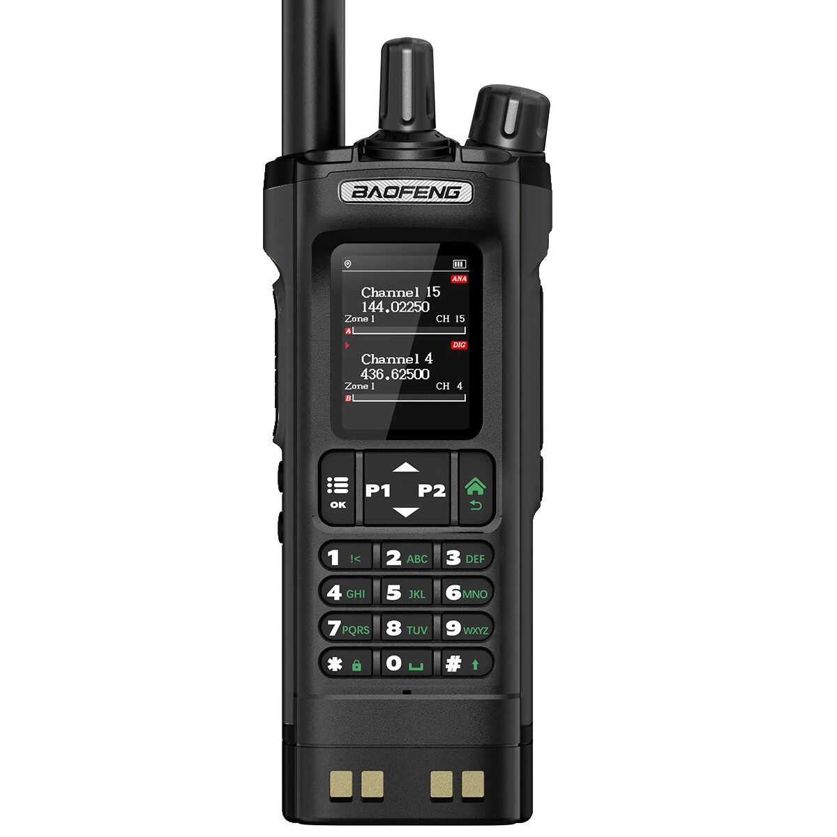 Especificações:- Faixa de frequência: FM: 65- 108MHz (RX), AM: 108- 136MHz (RX), 136- 174MHz (RX/TX), 400- 470MHz (RX/TX)- Tamanho da tela: 2,0" Tela TFT- Canais de memória: 4000 canais- Modos: Analógico e Digital (DMR)- GPS habilitado: Suporta APRS- Funções adicionais: Alertas meteorológicos da NOAA,VOXs,função SMS Recursos:1. Compatibilidade em Modo Duplo: Mude facilmente entre os modos DMR e Analógico, atendendo a diversas necessidades de comunicação para ambientes de uso versáteis.2. Cobertura de frequência abrangente: A recepção de uma ampla faixa de frequências, incluindo as bandas FM e AM, garante que você fique informado sobre as transmissões locais e alertas meteorológicos.3. Suporte avançado para GPS APRS: Aproveite a funcionalidade GPS integrada, permitindo o rastreamento de localização em tempo real e comunicação APRS para uma melhor conscientização situacional.4. Grande tela TFT de 2,0" : Exibição clara e brilhante que proporciona fácil leitura das informações do canal, mensagens e menus, aprimorando a interação e o controle do usuário.5. Memória de canal robusta: com capacidade de armazenamento de até 4000 canais,organize e acesse numerosos canais de forma eficiente,ideal tanto para uso pessoal quanto profissional. Pacote incluído:1 x Máquina1 x Antena1 x Bateria1 x bolsa de rádio1 x Cabo Type-C1 x Cordão de Pescoço1 x Carregador Base (Plugue EU)1 x Adaptador1 x fone de ouvido