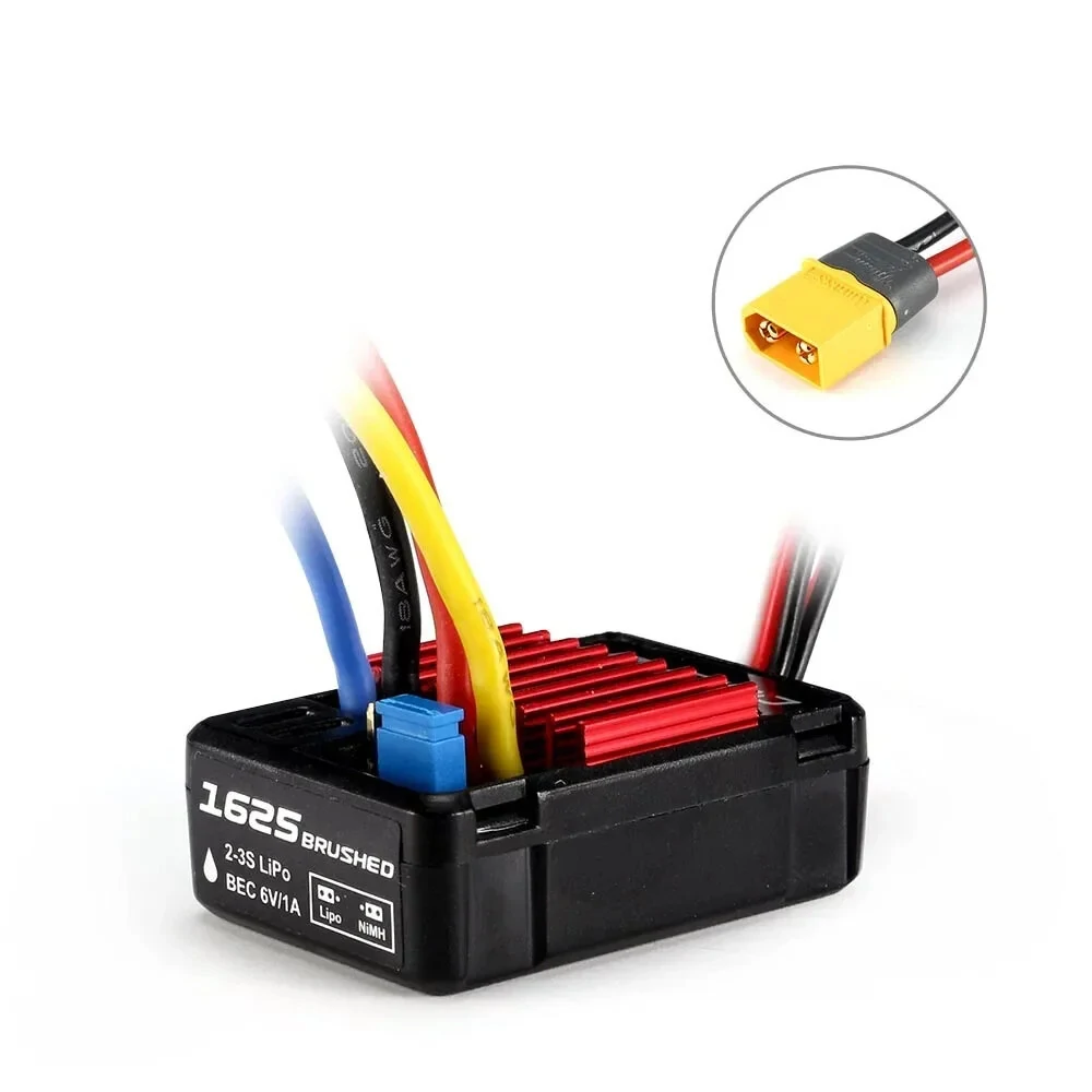 설명:이 Hobbywing QuicRun 1625 25A, 1060 60A 및 1080 80A ESC는 RC 1/8, 1/10, 1/16 또는 1/18 투어링 카, 트럭, 몬스터, 트루기, 록 크롤러 및 탱크에 설치할 수 있습니다. 다른 BEC 출력을 갖는 다양한 구동 모드 ESC를 자유롭게 RC 차량에 선택할 수 있습니다.특징:이 Hobbywing QuicRun 1625 25A, 1060 60A 및 1080 80A ESC는 RC 1/8, 1/10, 1/16 또는 1/18 투어링 카, 트럭, 몬스터, 트루기, 록크롤러 및 탱크와 호환됩니다.방수 및 방진 처리 된 브러시 ESC는 다른 날씨 조건의 경주를 다룰 수 있습니다.1625 25A ESC의 전진/후진/브레이크 주행 모드는 일상적인 RC 자동차 연습에 충분합니다.4. 1060 60A ESC에 대해 전진/후진/브레이크, 전진/브레이크 및 전진/후진 3가지 운전 모드를 자유롭게 전환할 수 있습니다.1080 80A ESC의 전진/후진 모드는 암벽 등반 크롤러에 특히 설계되었습니다.6. 휴대용 크기의 내장 커패시터 모듈로 인해, 이 ESC는 우수한 전기 전류 내구성을 갖게됩니다.7. 우수한 내장 BEC 출력 용량.8. 자동 쓰로틀 범위 보정으로 초보자도 쉽게 사용할 수 있습니다.9. ESC 프로그램 포트에서 매개 변수를 쉽게 설정하기 위해 점퍼 캡을 사용하십시오.10. 배터리에 대한 저전압 차단 보호, 과열 보호 및 스로틀 신호 손실 보호가 내장되어 있습니다.11. 다양한 차량, 트랙 및 1080 80A ESC에 대한 튜닝 가능한 드래그 브레이크 및 드래그 브레이크 비율.12. 조절 가능한 PWM 주파수와 고급 회로 해제(/DEO) 기술을 결합하여 1080 80A ESC의 쓰로틀 선형성과 운전감을 보장합니다.1080 80A ESC에 적용되는 차량, 타이어 및 트랙에 대한 소프트부터 공격적인 가속도/벌칙의 9단계.1080 80A ESC 용 초기 브레이크 힘, 최대 브레이크 힘 및 드래그 브레이크 힘이있는 9 단계의 비례 브레이크.15. 정교한 공작 ESC는 RC 차량에 완벽한 업그레이드 부품입니다.사양:QuicRun WP 1625 브러쉬드:브랜드: HOBBYWING브러시드 / 브러시리스 : 브러시드방수: WP적용 가능한 모터 : 브러시차량 규모: 1/16 및 1/18 투어링카/몬스터/트럭모터 제한 (KV 등급 / T 수):2S LiPo 또는 6 NiMH : RPM 3S LiPo 또는 9 NiMH : RPM전면/피크 전류: 25A/100ARev. Cont./피크 전류 : 25A/100A2-3S 리포 / 6-9 셀 니엠에이치BEC 출력: 1A/6V (선형 모드)저항 : Fwd 0.003Ω, Rev 0.003Ω쿨링 팬: 포함되지 않음프로그램 포트 : 점퍼 캡운전 모드: 전진/후진/브레이크입력 와이어 : 레드 - 18AWG - 75mm * 1 / 블랙 - 18AWG - 75mm * 1출력 와이어: 파랑-18AWG-75mm*1/노랑-18AWG-75mm*1입력 커넥터: 소형 TAMIYA/T/XT60출력
