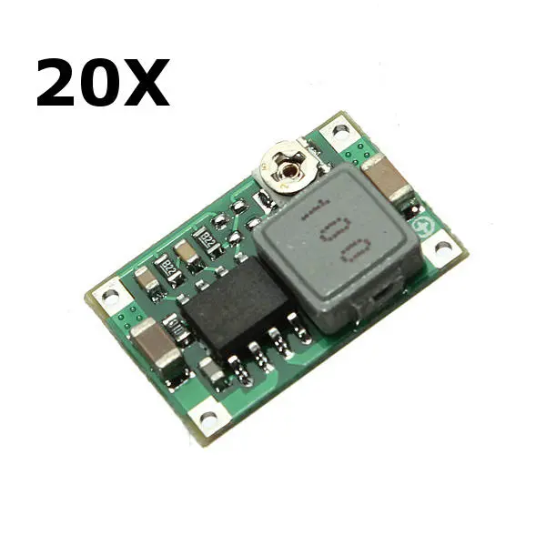 Modulo abbassatore di tensione regolabile in miniatura a corrente continua 20PcsDescrizione:Proprietà del modulo: Modulo step-down non isolato (BUCK)Rettifica: Rettifica sincronaTensione di ingresso: DC 4,75V-23VTensione di uscita: DC 1.0V-17V (Regolabile, Uscita Uscita attuale: Corrente nominale 1,8A (3A MAX, non può essere prolungata)Ondulazione di uscita: 30 mV (senza carico)Dimensione: 17 x 11 x 4 mm (L x L x A) / 0.67 x 0.43 x 0.16 pollici circaPacchetto incluso:20 x Modulo di riduzione di tensione Mini DC-DC regolabile