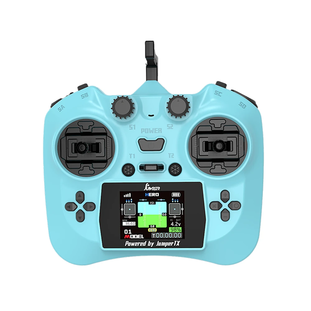 점퍼 스마트 2.4GHz 12CH ELRS 2인치 컬러 화면 풀 기능 소형 라디오 컨트롤러 홀 센서 짐벌 포함사양:브랜드: 점퍼색상: 회색/파랑/녹색/흰색 (선택 사항)시스템 소프트웨어: JumperTXRF 프로토콜: ELRS 2.4G전송 전력: 100mw안테나 유형: 다방향 접이식채널 수: 전체 비례 12채널짐벌 유형: 홀 센서짐벌 구조: B-볼 베어링 시스템스크린 해상도: 320*240 (2인치)디스플레이 유형: 풀컬러 IPS언어 선택: 중국어/영어시뮬레이터 인터페이스: USB-C/3.5mm 잭전원 공급: 1 18650 배터리충전 방법: USB-C (5V)제품 크기: 152*160*63mm제품 무게: 353g (배터리 제외)특징:- 다양한 색상으로 제공됩니다- 전방향 접이식 안테나- 빠른 버튼, 사용하기 쉽다- 전문가용 항공기 등급 조이스틱, 8개 볼 베어링, 부드럽고 정밀- 내장 ELRS 2.4G 100mw,원거리 제어 거리 최대 8km- 2인치 고화질 컬러 화면 1PS, 320*240 해상도- USB-C 충전 및 시뮬레이션(내장된 고속 충전 회로)포함된 패키지:1x 점퍼 스마트 리모컨
