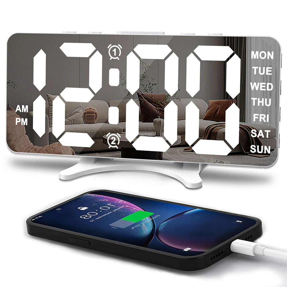 Özellikler:Ad: Modern Yatak Odası Ayna Dijital Çalar SaatGörüntü: 6.7 inç Büyük Ayna LEDZaman Biçimi: 12/24SParlaklık Ayarları: 4 Seviye (Süper Parlak, Parlak, Orta, Koyu)Snooze Fonksiyonu: 9 dakikalık aralıklar,2 dakikalık varsayılan snooze süresiAlarm Modları: 5 Mod (Pazartesi'den Pazar'a, Pazartesi'den Cuma'ya, Pazartesi'den Cumartesi'ye, Cumartesi'den Pazar'a, Tek Gün)Güç Kaynağı: USB kablosu (USB duvar prizi dahil değildir)USB Bağlantı Noktaları: 2Pil: Güç kapalı belleği için CR2032Montaj Seçenekleri: Masa kullanımı için çıkarılabilir taban, duvar asma deliğiÖzellikler:- Çok Yönlü Ayna ve Dijital Saat:Çalar saat sadece zamanı bildirmekle kalmaz,aynı zamanda şık bir ayna görevi de görür. Eşsiz PC ayna teknolojisiyle donatılmış 6.7 inç LED ekran,onu güzellik ve makyaj için kullanmanıza olanak tanır. Büyük sayılar,odanın her yerinden okunması kolaydır ve işlevselliği modern estetik ile birleştirir.- Özelleştirilebilir parlaklık ve gece modu:Farklı ortamlar için ekran parlaklığını dört seviyede (Süper Parlak, Parlak, Orta, Karanlık) ayarlayın. Gece modu, LED ekranını otomatik olarak 18:00 - 6:00 saatleri arasında en düşük parlaklığa azaltır ve dinlenmenizi rahatsız etmeden sessiz bir uyku ortamı yaratır.- Birden fazla ayarı olan çift alarm saati:Ağır uyuyanlar için mükemmel olan bu saat, 9 dakikalık erteleme fonksiyonu ile iki alarm ayarı sunuyor. Programınıza uyması için beş alarm modundan birini seçebilirsiniz: Pazartesi'den Pazartesi'ye, Pazartesi'den Cuma'ya, Pazartesi'd