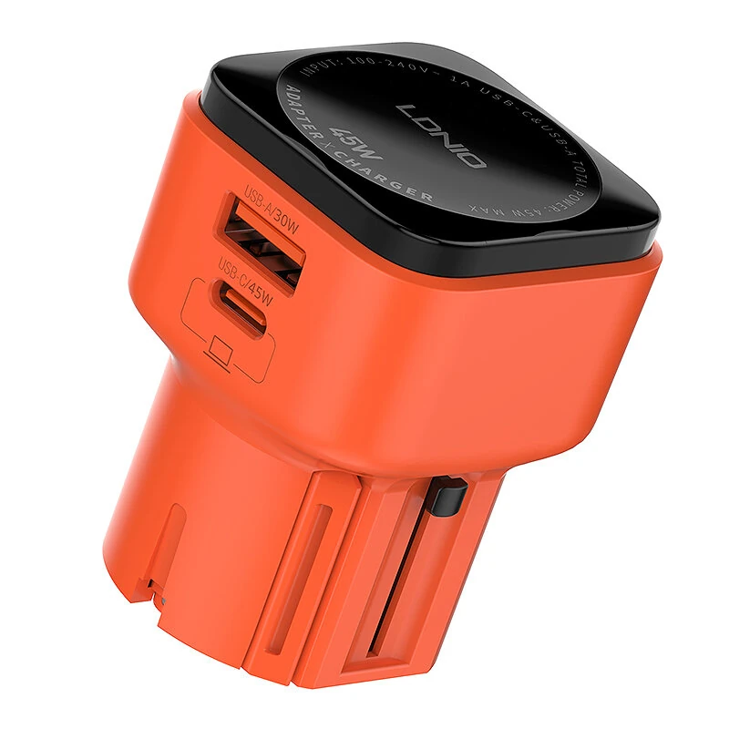 사양:브랜드LDNIO모델Q2420색깔오렌지인터페이스 USB-A+USB-C입력100-240V~, 50/60Hz, 1A Max출력USB-C 출력: 5V3A,9V3A,12V3A,15V3A,20V 2.25APPS: 3.3V-11V 4.5A,3.3V-21V 2.25A 45W 최대USB-A 출력: 5V3A,9V3A,12V2.5A 30W 최대USB-C + USB-A 출력: 5V5A,최대 25W총 출력 전력45W Max특징: 1. 범용 호환성: EU/UK/US/AU 플러그가 장착되어 있어 150개국 이상의 국제 여행에 이상적입니다.2. 고속 충전: Apple 및 Android 장치의 빠르고 효율적인 충전을 위해 PD,QC4+/3.0,SCP,AFC,PPS와 같은 여러 고속 충전 프로토콜을 지원합니다.3. 듀얼 포트: USB-A 포트와 USB-C 포트를 모두 포함하여 두 장치를 동시에 충전할 수 있습니다.4. 고급 안전성: 과전압, 과전류 및 단락으로부터 보호하기 위한 내장 스마트 칩으로 안전한 충전을 보장합니다.5. 컴팩트 디자인: 가볍고 휴대성이 뛰어나 기능성을 해치지 않으면서 여행에 편리합니다.포함된 패키지:1x 충전기1x 케이블 (옵션)