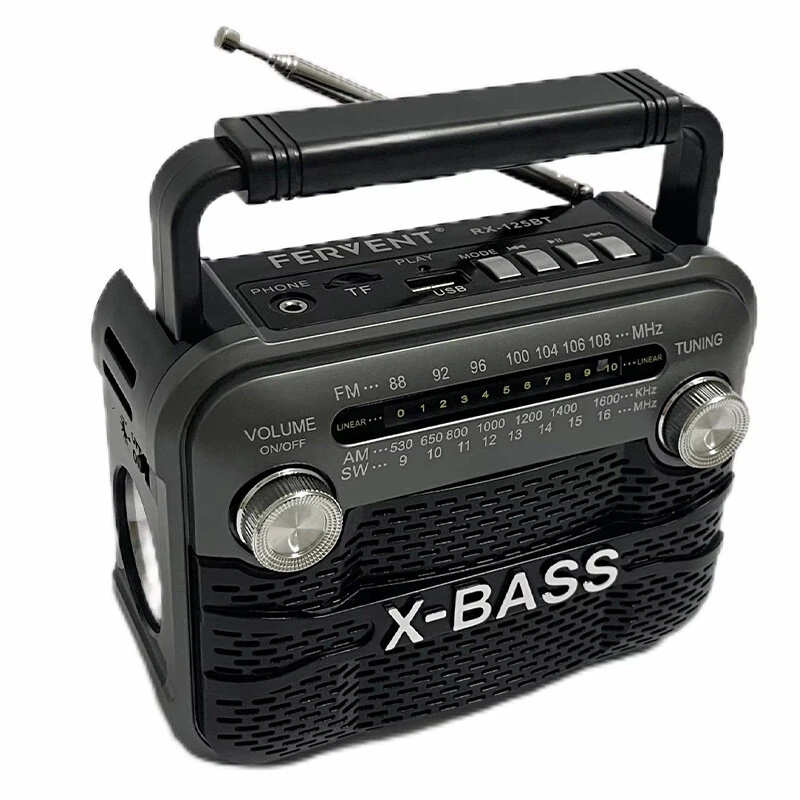 사양:브랜드: X-BASS제품 이름: 핸드헬드 라디오수신 모드: FM/AM/SW치수: 15 x 12 x 8 cm바디 재질: 플라스틱블루투스: 예스타일: 휴대용기능: 내장 스피커,손전등음악 재생: USB,블루투스,TF 카드 및 헤드폰 사용을 지원합니다특징:1. 멀티밴드 튜닝: FM,AM,SW 주파수를 수신하여 폭넓은 청취 옵션을 보장합니다.2. 블루투스 연결: 블루투스 호환 장치에서 음악을 재생할 수 있도록 원활한 무선 연결을 제공합니다.3. 다재다능한 음악 플레이어: 다양한 음악 재생 옵션을 위해 USB 및 TF 카드 입력을 지원합니다.4. 내장형 플래시라이트: 플래시라이트가 장착되어 있어 실내외 사용에 적합합니다.5. 휴대용 디자인: 컴팩트하고 가벼워서 이동 중 사용에 적합합니다.포함된 패키지:1 x X-BASS 휴대용 라디오