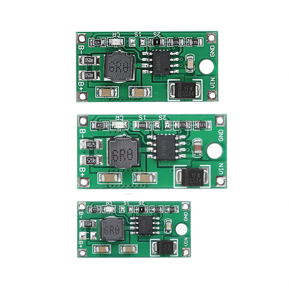 자세한 내용: 여기를 눌러 열기설명:1셀(1S) 4.2V 버전:입력 전압: DC 4.5V-23V (권장 DC 5V/6V/9V/12V/15V)충전 전압: 4.2V충전 전류: 1A/2A(구매시 필요한 매개변수를 선택하십시오)2셀(2S) 8.4V 버전:입력 전압: DC 10-23V (추천 DC 12V/14.8V/15V/18V)충전 전압: 8.4V충전 전류: 0.5A/1A(구매 시 필요한 매개변수를 선택해 주세요)3셀(3S) 12.6V 버전: 입력 전압: DC 14.8-23V (DC 14.8V/15V/18V 권장)충전 전압: 12.6V충전 전류: 0.5A/1A(구매 시 필요한 매개변수를 선택해 주세요)LED 표시기:밝기: 충전 중지: 완전한 깜빡임: 거의 충전 완료; 충전 전류가 너무 크면 (또는 배터리 용량이 작으면) 빠르게 깜박이는 상태로 들어가야하며, 충전 전류를 줄여야합니다.작동 환경 온도: -40°에서 +85°까지저장 온도: -65°에서 +125°까지크기: 30*15*5.5mm무게: 2g응용 프로그램:휴대전화PDA, MP3 플레이어, MP4 플레이어디지털 카메라블루투스 응용 프로그램게임 플레이어노트북li-on 리튬 배터리 18650 휴대폰태양 에너지 충전MP3/MP4 플레이어오디오 장비휴대용 장치패키지에 포함되어 있는 것:1 x 동기 Buck Li-Ion 배터리 충전기 (선택 사항)