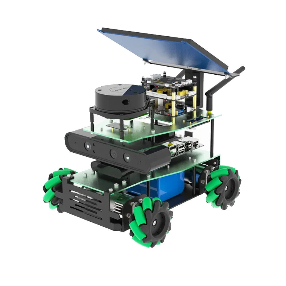 الوصف:روزماستر X3 هو روبوت تعليمي يعتمد على نظام تشغيل الروبوت مع عجلة مقانة ، يتوافق مع جيتسون نانو / أورين نيكس / أورين نانو وراسبيري باي 5. وهو مزود بليدار ، وكاميرا عمق ، ووحدة تفاعل صوتية وغيرها من الوحدات الأجهزة ذات الأداء العالي. باستخدام برمجة بايثون ، يمكن لروزماستر X3 تحقيق تعريف الخرائط والتنقل ، والمتابعة أو التجنب ، والطيران التلقائي واكتشاف وضعية جسم الإنسان. يدعم التحكم عن بعد التطبيق ، والتنقل الخريطي التطبيق ، والتحكم عن بعد بواسطة المقبض ، وتحكم ROSsystem PC وطرق التحكم عن بعد المتعددة النظام. نحن نقدم 103 دورة فيديو وعدد كبير من الشفرات ، والتي يمكن أن تتيح للمستخدمين تعلم برمجة الذكاء الاصطناعي وأنظمة ROS.الميزات:مادة سبائك الألومنيوم ، عجلات ميكانوم للتحرك الشامل بزاوية 360 درجة.2. تكوين الأجهزة المحترفة ، ليدار ، كاميرا العمق ، وحدة التفاعل الصوتي ، الخ.3. باستخدام أوربسلام2 + أوكتوماب ، خوارزميات RRT لتحقيق ملاحة الخريطة ثلاثية الأبعاد والموضع الذاتي.بالاقتران مع وحدة التفاعل الصوتية، يمكن للمستخدم التحكم في حالة الحركة للروبوت أو إكمال بعض الوظائف من خلال الأوامر الصوتية.5. أساليب التحكم عن بعد المتنوعة مثل تطبيق الهاتف المحمول والمقبض ونظام ROS ولوحة مفاتيح الكمبيوتر.6. ستتم توفير 103 فيديو تعليمي تفصيلي وشفرات برمجية ذات مصدر مفتوح لنظام ROS2، بالإضافة إلى الدعم الفني المهني مجانًا.تتضمن الحزمة: 【النسخة الأفضل-ORIN NANO 4GB】:1x هيكل السيارة1x RPLIDAR A11x لوحة توسعة روز الروبوت1x مقبض لاسلكي USBكاميرا عمق 1x1x وحدة تفاعل الصوتشاشة LCD بمقاس 7 بوصات × 11x ORIN NANO 4GB【النسخة النهائية - مع ORIN NX 8GB】:1x هيكل السيارة1x RPLIDAR S2L1x لوحة توسعة روز ا