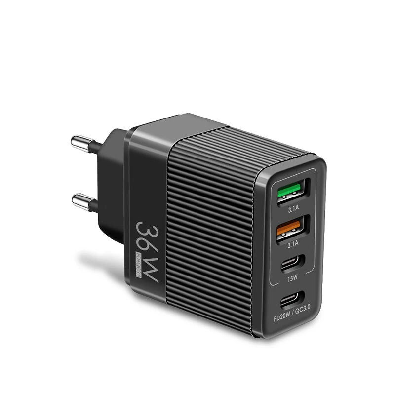 Özellikler:Ürün adı36W 4 Port USB Şarj CihazıRenkSiyah/BeyazMalzemePC+ABS yangına dayanıklı malzemeBoyut50*25*90mmAğırlık55gGirişAC100-240V 50/60Hz 0.5AÇıktı5V/4A 9V/2.4A 12V/1.8AProtokollerPD/QC3.0TipAB FişiGüç36W Paket içeriği:1 x 36W 4 Port USB Şarj Cihazı