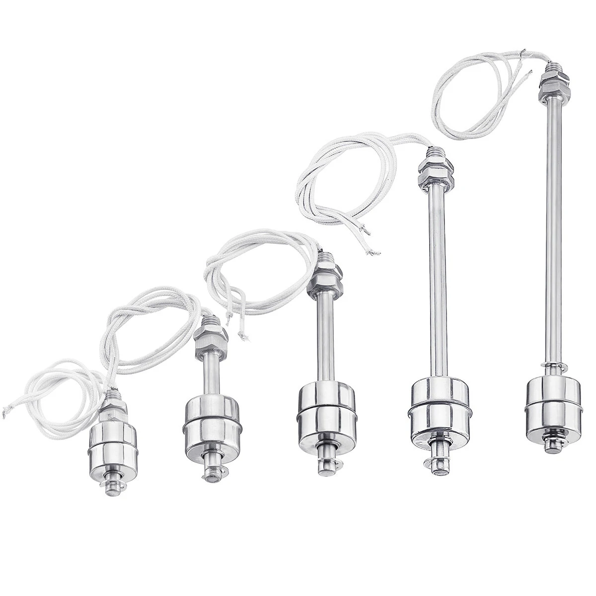 Especificações:Material: Aço inoxidávelEspecificação do fio: Fio de silicone trançado branco de alta temperaturaCor: PrataComprimento opcional: 45 mm, 75 mm, 100 mm, 150 mm, 200 mmTensão de suportação: 240V CA / 220V CC10W / 50WCorrente máxima de passagem: 1AAlternar trabalho: pode ser revertidoPressão de operação: 10 kg / cmTemperatura de operação: -10 ~ 120℃Adequado para a gravidade específica: 0,75Tamanho do furo: 10mmMétodo de instalação: Instalação vertical Recursos:● O interruptor de flutuação é usado em alarmes de nível alto-baixo, prevenção de transbordamento ou derramamento, e proteção da bomba.● Sensor de nível de líquido montado verticalmente. Pode ser facilmente instalado através de um simples furo perfurado dentro do recipiente.Este interruptor de flutuação é uma estrutura simples, controlador de nível de líquido de instalação fácil.● Não possui um circuito complexo e não será perturbado.● Leve e princípio de funcionamento simples, alta confiabilidade. Pacote incluído:1 x Interruptor de boia (não inclui outras decorações)