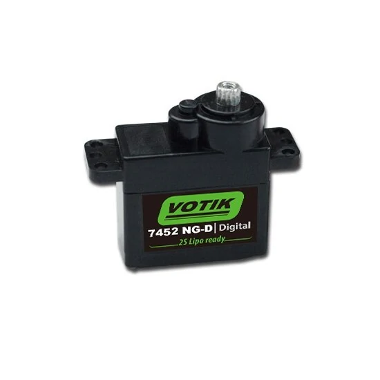 VOTIK 9G Servo Digitale 7452 a Ingranaggi Metallici Aeroplano EPP Aeromobile Drone RC ad Ala Fissa ElicotteroCaratteristicheServomotore digitale di alta qualità, altamente preciso, veloce e potente.Basandoci sull'eccellente 7450 NG-D V2, abbiamo aggiunto ingranaggi e cuscinetti in metallo.Ideale per l'uso con aerei da parco affidabili, indoor e elicotteri di classe 450. DescrizioneIngranaggi: Alluminio metallicoGioco degli ingranaggi: molto bassoCuscinetti a sfere: SÌ 1Peso: 12,55 grDimensioni: 23,6 x 26,9 x 11,7 mmVelocità/Coppia@ 4,8V: 0,105 sec/60° 1,9 kg/cmVelocità/Coppia@ 6V: 0,098 sec/60° 2,3 kg/cmTensione di funzionamento: 4,8V - 6VCordone / Conduttore: 240mmCompatibilità: Connettore universaleBanda morta: 2 μs Pacchetto incluso (opzionale) Solo servo digitale VOTIK 9G