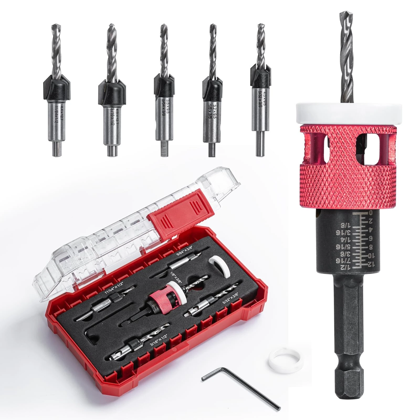 사양:재료: 알루미늄샤크 타입: 육각형절단 각도 문자열: 82 도치수: 0.1 x 0.1 x 0.1인치 특징:5개 HSS 비트 세트: 1/8",9/64",5/32" 드릴,3/8" 82° 및 11/64" 카운터싱크 드릴의 크기로 고속강 M2 비트 5개가 포함되어 있으며,안전한 그립을 위한 1/4" 헥스 샹크가 추가되어 있습니다.조절 가능한 깊이: 파일럿 드릴과 카운터싱크 깊이는 포함된 렌치를 사용하여 조정할 수 있어 정밀한 드릴링이 보장됩니다. 추가된 플라스틱 칼라는 표면 마모를 효과적으로 줄입니다.날카롭고 효율적: M2 HSS 파일럿 비트는 나선형 칩 플루트로 빠른 절단을 보장합니다. 날카로운 합금 강 절삭 가장자리가 82도 미국 나사 기준에 맞춘 매끄러운 카운터싱크 홀이 생성됩니다.폭넓은 적용: 천연 목재, 파티클 보드, 합판, MDF, 데크, 석고 보드 및 다양한 플라스틱에서 사용할 수 있습니다. 최적의 결과를 위해 카운터 싱크를 약 200 RPM의 느린 속도로 작동하십시오.콤팩트하고 편리함: 추가 플라스틱 콜라 및 육각 렌치가 포함된 세트는 무게가 고작 8.82온스인 작은 휴대용 케이스에 보관되며, 쉽게 휴대할 수 있도록 걸이 홀 디자인이 있습니다. 포함된 패키지: 5 x HSS 카운터 싱크 드릴 비트 1 x 플라스틱 칼라 1 x 알렌 렌치mso-bidi-font-family:'Times New Roman';font-size:10.5000pt;mso-font-kerning:1.0000pt;mso-bidi-font-family:'Times New Roman';font-size:10.5000pt;mso-font-kerning:1.0000pt;
