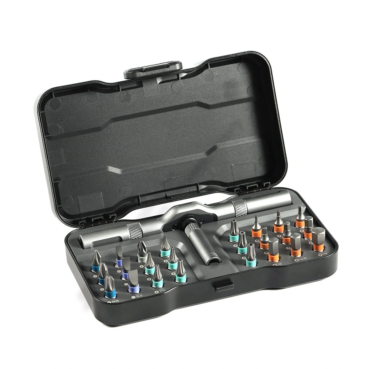 Features Versatile Multi Functionality The ATuMan RS1 Multipurpose Ratchet Set offers outstanding flexibility with its interchangeable handle allowing it to function both as a ratchet wrench and a screwdriver This adaptability makes it suitable for a wide range of applications from working in cramped spaces to accessing deep cavity structures This set is ideal for any household or professional toolkit Efficient Ratchet Design Featuring a 6 2 degree ratchet with a 58 tooth forward and reverse structure this tool is designed to save up to 80 of labor The fine toothed ratchet design ensures that even in narrow spaces the tool can easily handle any task This labor saving design enhances productivity by significantly reducing the effort required for repetitive tasks High Quality Materials Constructed from 6063 forged aluminum alloy for the handle and S2 chrome molybdenum alloy steel for the bits the ATuMan RS1 ratchet set boasts superior strength and durability The gear components are made from 5030 alloy steel ensuring reliable performance even under heavy use The shell is made from ABS PP providing a sturdy and long lasting housing for the set Magnetic Adsorption The tool set features fast magnetic adsorption ensuring that bits are securely held in place during use This feature streamlines bit changes and provides a hassle free user experience Switching between tasks is seamless and swift making the set highly effective for fast paced work environments Comp
