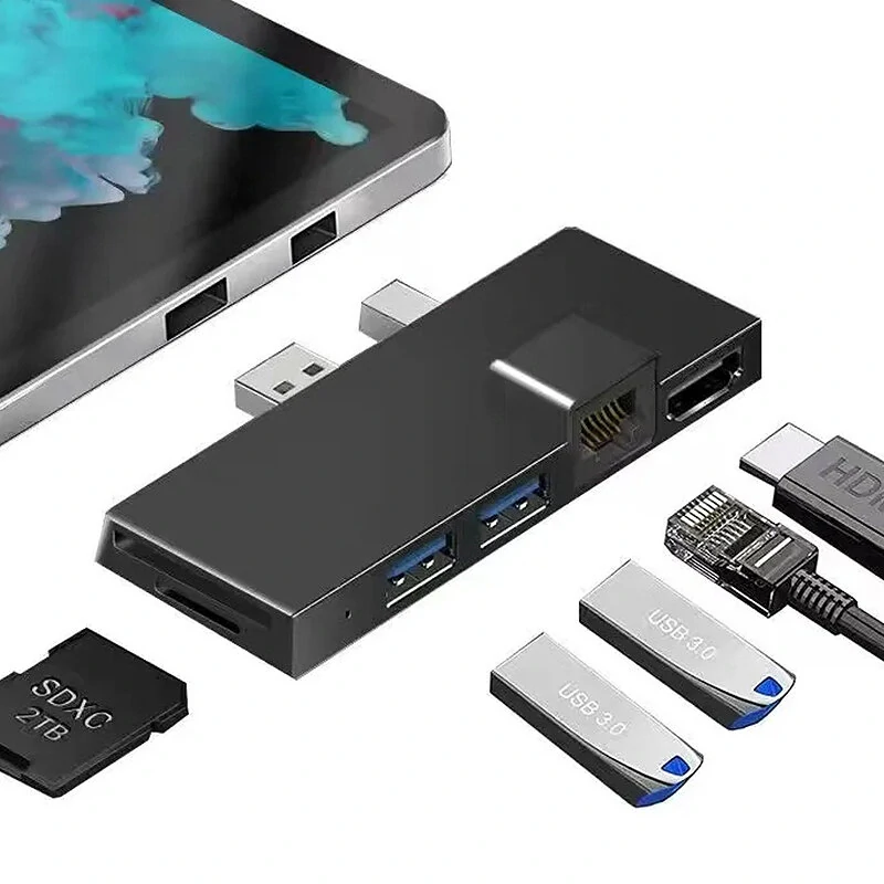 Özellikler:Uyumluluk: Microsoft Surface Pro 4/5/6Arabirim: USB3.1 Gen1*2, HD, RJ45 Ethernet Portu, SD/TF Kart YuvasıRenk: Gümüş/SiyahÖzellikler:Microsoft Surface Pro 4/5/6 için özel olarak tasarlanmıştır, cihazınıza sorunsuz bir şekilde entegre olarak şık ve kompakt bir görünüm sağlar.İki USB3.1 Gen1 portuyla cihazınızı genişletir, yüksek hızlı veri transferini destekler ve çalışırken ya da oyun oynarken daha fazla olasılık ve verimlilik sunar.Harici bir ekran veya projektörle bağlantı için HD bağlantı noktası sunarak genişletilmiş bir görsel iş alanı sunar.RJ45 Ethernet bağlantı noktası, güvenilir ve stabil internet erişimini sağlayan 1000M yüksek hızlı kablolu ağ bağlantısına izin verir.Çeşitli hafıza kartlarının dosyalara kolay erişim için SD/TF kart yuvalarıyla birlikte gelir, yüksek çözünürlüklü görüntüleri ve video kayıtlarını transfer etmek için idealdir.Paket içeriği:Microsoft Surface Pro için 1x 6-in-1 Genişletme İstasyonu