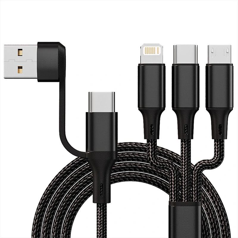 Özellikler:RenkSiyah/Kırmızı/GümüşKablo Uzunluğu1.2MMevcut3AGiriş ArayüzüUSB-A/Type-CÇıkış ArabirimiMicro/iP/Type-CVeri İletimiDesteklenmiyorUyumlu CihazlarAkıllı telefonlar, Tabletler, Dizüstü bilgisayarlarÖzellikler: Hızlı şarj: 3A'lık bir akım çıkışıyla, bu kablo uyumlu cihazlar için hızlı şarj olanağı sağlayarak genel şarj süresini azaltır.2. Çok yönlü uyumluluk: Bu kablo, akıllı telefonlar, tabletler ve dizüstü bilgisayarlar dahil olmak üzere geniş bir cihaz yelpazesiyle uyumludur, bu da birden fazla cihaz için pratik bir şarj çözümü sağlar.3. Uzun ömürlü yapı: Yüksek kaliteli malzemelerle yapılmış bu kablo dayanıklıdır ve günlük aşınmaya karşı dayanıklıdır.4. Çoklu renk seçenekleri: Stilinize veya tercihinize uyum sağlamak için üç şık renk seçeneği arasından seçim yapın - Siyah, Kırmızı ve Gümüş.5. Çift giriş ve çoklu çıkış seçenekleri: Kablo, USB-A ve Tip-C giriş arayüzlerine sahip olup, çeşitli güç kaynaklarına bağlamanıza olanak tanır. Ayrıca Micro, iP ve Tip-C çıkış arayüzlerine sahip olup, farklı cihaz şarj portlarıyla uyumluluk sağlar.Paket İçeriği:1x Kablo