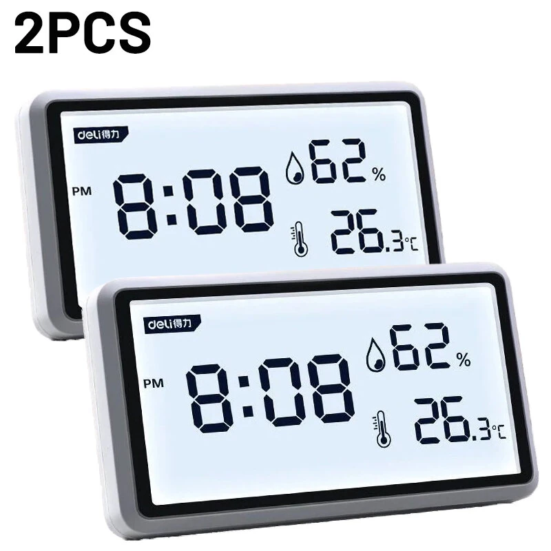 Click to download the instruction manualFeatures Multifunctional Display This Xiaomi Deli Electronic Thermometer Hygrometer Weather Station offers a simultaneous display of time temperature and humidity facilitating comprehensive monitoring of your home environment High Precision Readings With the temperature displayed to 0 1℃ accuracy and an error margin of ±1℃ this device provides you with precise weather data to guide your daily activities and plan your routines User Friendly Design The backrest design allows the device to be conveniently placed on any desktop Its 53° included angle ensures clear visibility from a distance Uninterrupted Performance Powered by dual AAA batteries this weather station guarantees a long battery life of up to 12 months ensuring uninterrupted and reliable monitoring Superior Screen Presentation The large 4 inch LCD screen ensures a high screen to body ratio and offers a satisfying viewing experience Specifications Power Source Dual AAA batteries not included in the package Operating Temperature Range 10 60℃Accuracy ±1℃Display Large 4 inch LCD screenFunctions Thermometer Hygrometer and Clock Package Included 2 x Electronic Thermometer Hygrometer NO BATTERY
