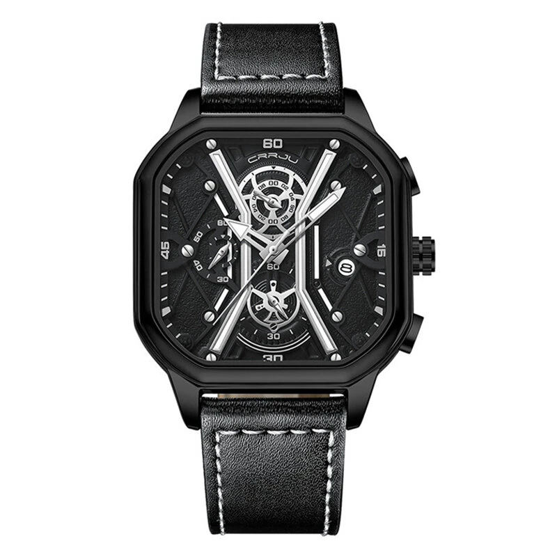 المواصفات:العلامة التجارية: CRRJUالوزن: 71 جراممقاوم للماء: 3ATMعرض الشريط: 20 ممقطر القرص: 43 ممسمك العلبة: 12 ممطول الشريط: 240 ممالميزات: 1. تصميم بسيط وأنيق، مناسب للمناسبات التجارية.2. حركة الكوارتز تضمن دقة الوقت.3. حزام جلد عالي الجودة لتجربة ارتداء مريحة.4. زجاج معدني مقاوم للخدش يحمي وجه الساعة.5. تصميم مقاوم للماء يسمح بالاستخدام اليومي بدون قلق.الحزمة تشمل: 1 × ساعة