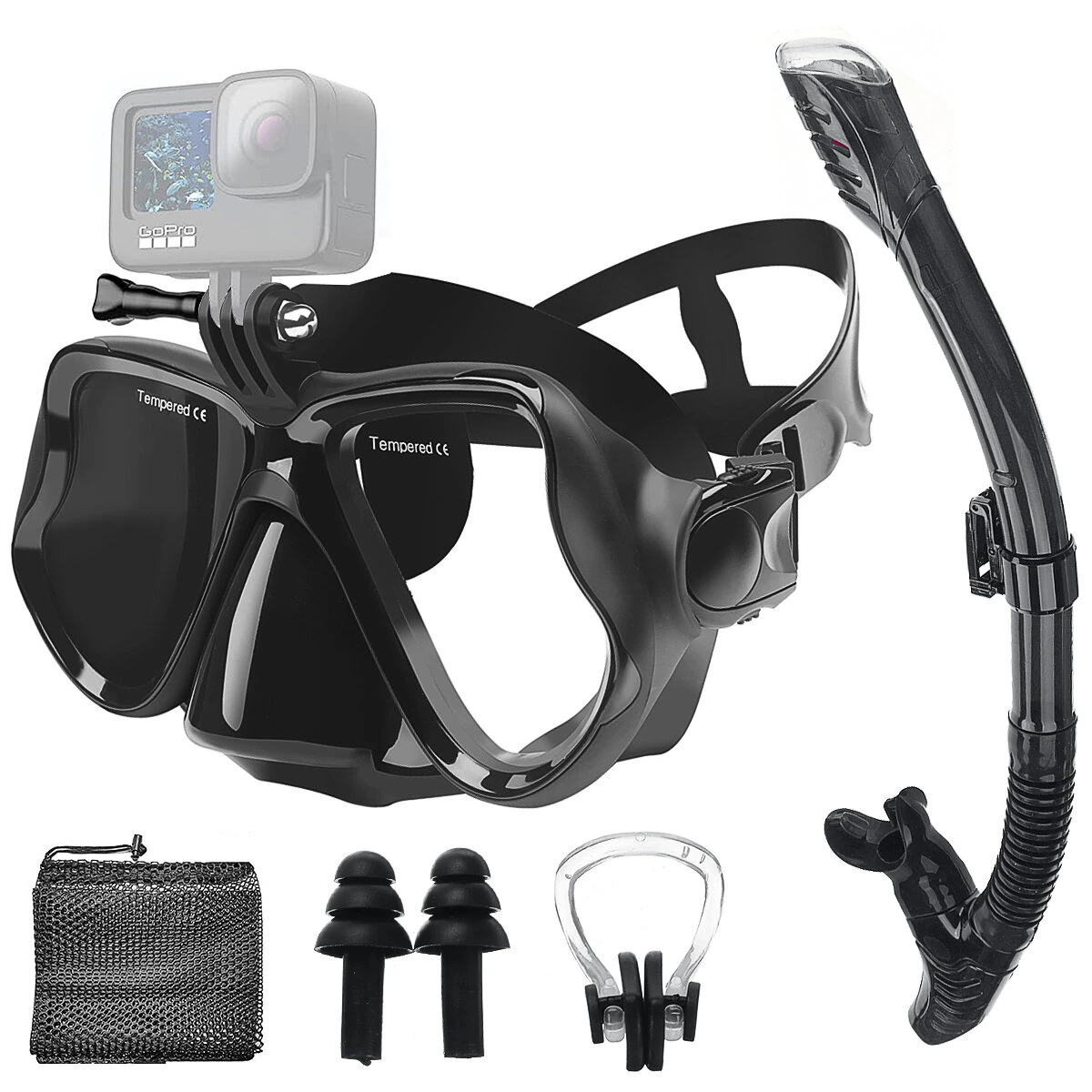 المواصفات:لونأسود / أزرقمادةسيليكونأحجام الأقنعة7.68*5.12 بوصة/19.5*13 سنتيمترطول الأنبوب18.5 بوصة/47 سم الميزات:-قناع سنوركل للكبار فريد من نوعه مع حامل كاميرا: تم تجهيز مجموعات السنوركل المحسنة بحامل كاميرا قابل للفصل، والذي يتوافق مع معظم كاميرات الرياضة. يمكنك بسهولة توصيل الكاميرا الخاصة بك لتصوير مشاهد تحت الماء رائعة وتقديم تجربة غوص فريدة للمستخدمين. حرر يديك لتكون أكثر حرية في الماء، وهو أكثر ملاءمة من أقنعة الغوص الأخرى للكبار في السوق.-قناع غوص بانورامي جديد بزاوية 180°: تستخدم عدسات زجاجية مقاومة للصدمات وتتميز بمعالجة مضادة للضباب للرؤية الواضحة تحت الماء. توفر معدات الغوص للبالغين رؤية بانورامية بزاوية 180° تحت الماء، مما يساعدك على فهم العالم تحت الماء بشكل أوضح. سترى المزيد من الأسماك وعالم تحت الماء أكثر من أي وقت مضى!-قناع الغوص مع تطابق مثالي: تأتي كل مجموعة للغوص للكبار مزودة بزوج من سدادات الأذن للسباحة، والتي يمكن أن تقلل من "ضغط الأذن" الناتج عن عدم القدرة على التوازن بين الأذن الخارجية والوسطى، وتساعد في منع العدوى في الأذن الخارجية والداخلية، والدوار، وتفاعل الحرارة. يمكن أن تحسن سدادات الأذن المناسبة في السباحة تجربتك في المسبح مع فوائد صحية كبيرة، مما يتيح لك الاستمتاع بالسباحة دون القلق بشأن "آذان السباحة".-نظارات الغطس من مواد ذات جودة احترافية: قناع الغوص للبالغين مصنوع من السيليكون الشفاف والطعام الآمن. أنبوب مرن مع فم مرن مصمم هندسيًا لتناسب صحيحة، وتساعد الفم المريح المتقدم على تقليل تعب الفك. مجموعة غوص الشفاط مع حقيبة تخزين لتسهيل التخزين والحمل. مثالي للغوص والسباحة والغوص والنشاطات المائية الأخرى.-أنبوب التنفس العلوي الجاف المحسن وقناع الغ