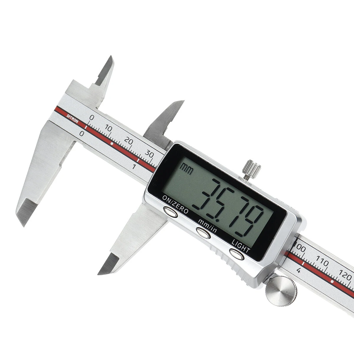 Calibro digitale vernier da 6 pollici (150 mm) in acciaio inossidabile con pachimetro elettronico e micrometro, colore display LCD con retroilluminazione, strumento di misuraBatteria non inclusa!Specifiche:● Materiale: Acciaio inossidabile● Modalità di visualizzazione: Display digitale LCD● Ambito di applicazione: Misurazione di diametri interni ed esterni● Campo di misura: 0-150 mm● Modello di batteria: CR20323V (batteria non inclusa)● Confezione: confezione in plasticaCaratteristiche:1. Effetto retroilluminazione, accendi la luce notturna, può funzionare normalmente al buio.2. Design di una ruota ausiliaria metallica chiusa per una misurazione scorrevole e una maggiore precisione di misurazione.3. Corpo di righello spessore, spessore di 3,4 mm.4. Modalità di misurazione metrica pollici e lunghezza di misurazione commutazione a un tasto.5. Una macchina è multiuso, semplice e conveniente.Pacchetto incluso:1 * Calibro digitale1 * Cacciavite