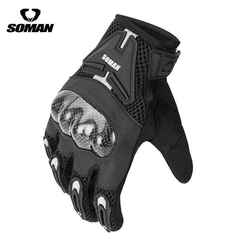 SOMAN 오토바이 장갑 탄소섬유 가죽 모토 라이딩 장갑 남성용 오토바이 보호 장비 오토바이 크로스