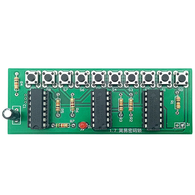 Spécifications:Nom du kit : Simple cadenas à combinaisonTension de travail: 5VTaille du circuit imprimé PCB : 91 * 32 mmMatériel de carte de circuit: carte RF-4 de 1,6 mmInclus dans le pack :1× Kit de verrouillage de mot de passe simple pour carte mèreNote : Le contenu du paquet est constitué de pièces détachées et doit être assemblé par vous-même.
