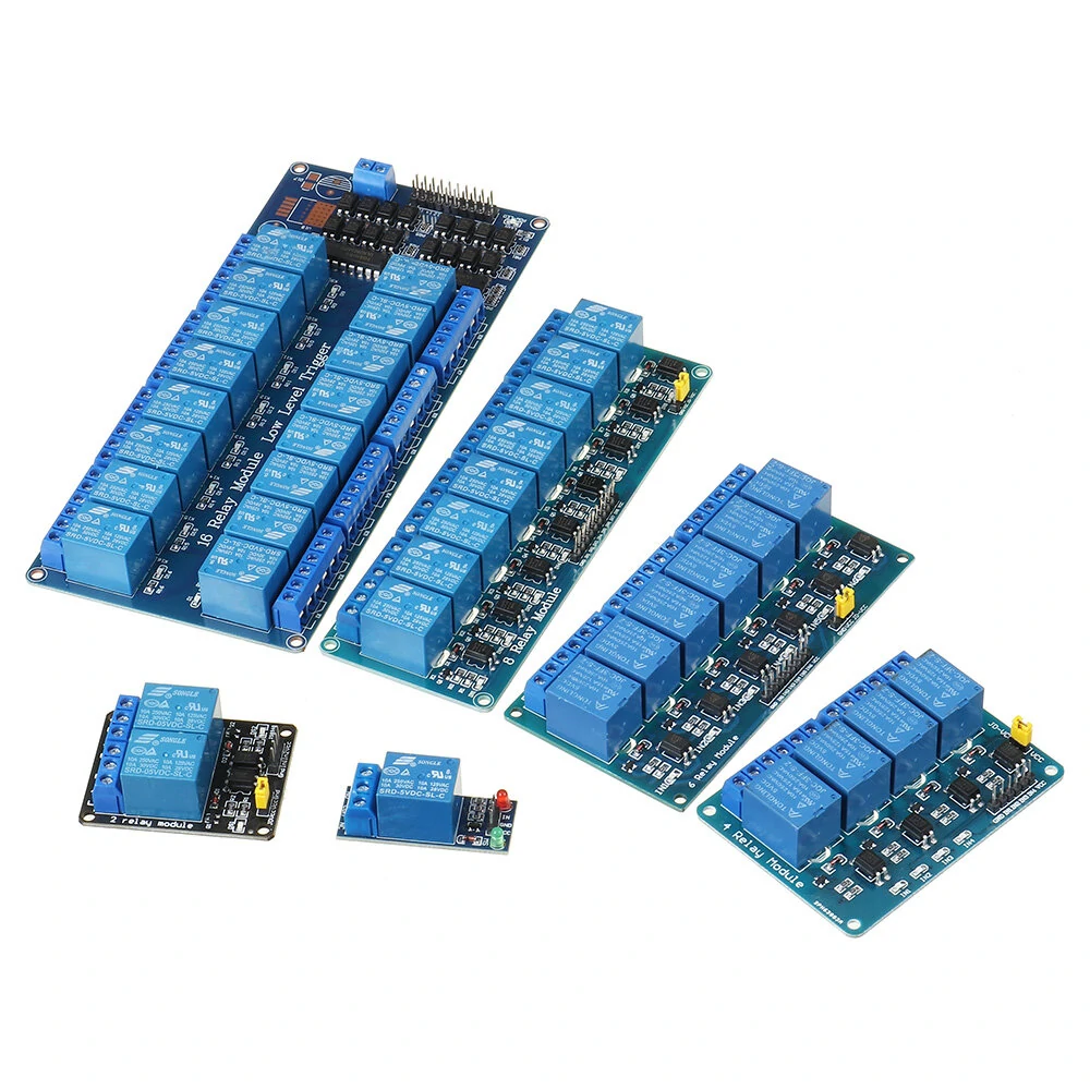 사양:전압 버전:-----5V-------------12V-------------24V정지 전류: 4mA-----------5.5mA----------12mA작동 전류 :---65mA-----------42mA----------40mA트리거 전압:-----0-2V------------0-4V-----------0-12V트리거 전류: -----2mA------------3mA-----------3mA릴레이 연락용량: 250V 10A (AC) 또는 30V 30A (DC)포함된 패키지:1 x 5V/12V 24V 1/2/4/6/8/16 릴레이 모듈