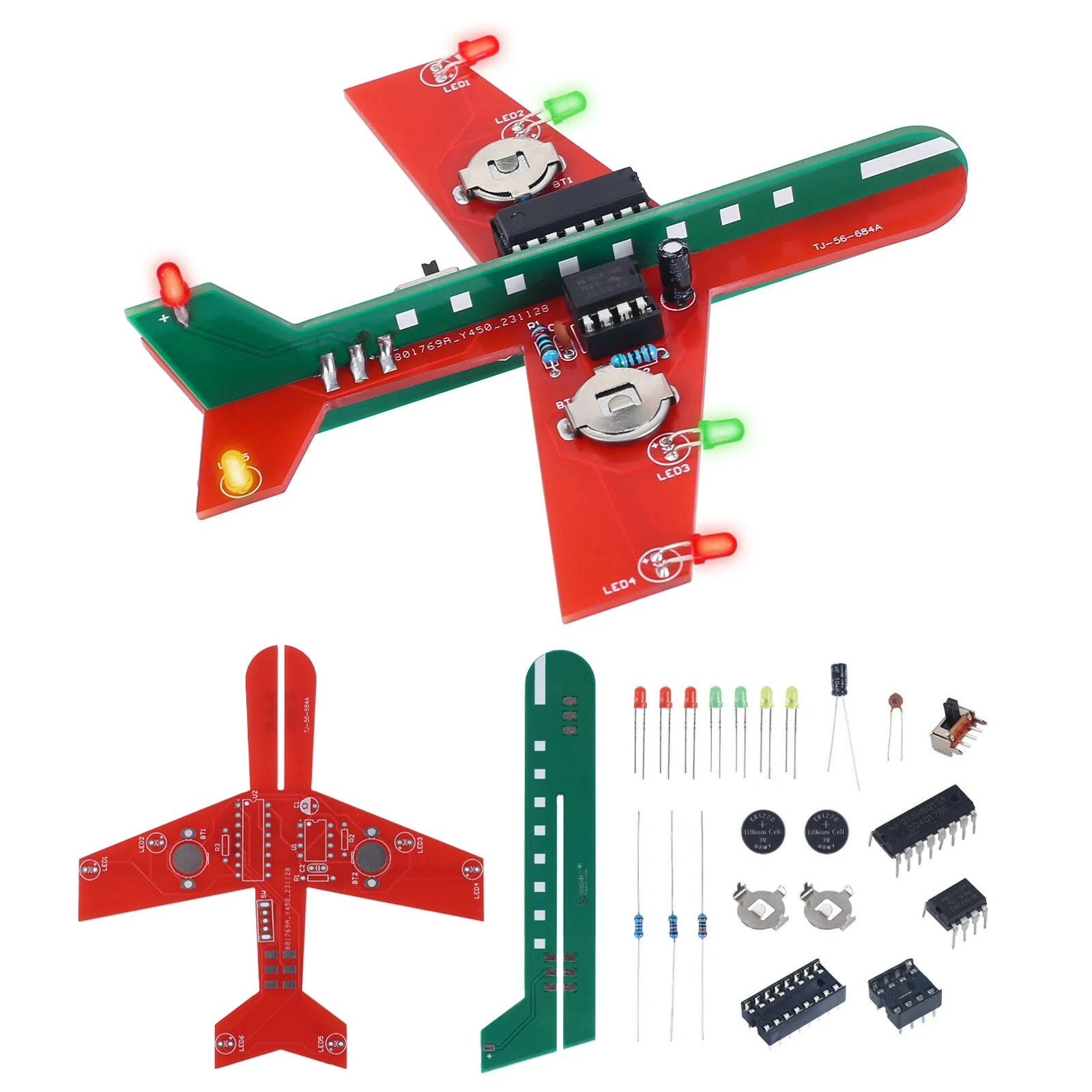 소개:비행기 플래시 LED 회로 DIY 키트입니다. 비행기 조명의 깜박임 효과를 시뮬레이션하고 DIY로 데스크톱 장식을 만들 수 있습니다. 회로를 이해하고 납땜하는 방법을 배울 수 있는 DIY 전자 용접 키트로만 사용할 수 있으며 매우 적합한 실험 작업대 도구로도 사용할 수 있습니다.특징:1. 항공기 디자인 시뮬레이션2. 내장형 CR1220 리튬 배터리3. 재미있는 DIY 수동 납땜4. 간단하고 쉽게 작동매개 변수:1. LED 색상: 빨강/녹색/노랑2. 배터리 종류: CR12203. 작동 온도: -20℃~85℃4. 작동 습도: 0%~95%RH5. 크기(설치됨): 110*105*33mm응용 프로그램:1. 용접 기술 훈련2. 학생 학교3. DIY 생산4. 프로젝트 디자인5. 전자 경기6. 선물주기7. 공예 수집8. 홈 데코레이션9. 졸업 설계10. 휴일 선물설치 팁:1. 사용자는 먼저 납땜 도구를 준비해야합니다.2. 설치가 완료될 때까지 기다려주십시오.3. 패키지는 DIY 키트입니다. 사용자가 설치를 완료해야합니다.4. 납땜 철은 부품에 오랫동안 닿으면(1.0초) 부품이 손상될 수 있습니다.5. 부품의 양극성과 음극성에 유의하십시오.6. 단락을 엄격히 금지합니다.7. 복잡한 구성 요소를 우선적으로 설치하십시오.8. 모든 부품이 올바른 방향과 위치에 있도록 확인하십시오.9. 전자 부품을 설치 할 때, 안티 스태틱 장갑 또는 안티 스태틱 손목띠를 착용하십시오.10. 설치를 시작하기 전에 설치 매뉴얼을 꼭 읽으십시오 !!!구성 요소 목록:U2에있는 1 개의 DIP-16 CD4017BE 10 진수 카운터.U1에 DIP-8 NE555P 타이머 1개. U2에있는 1 x DIP-16 IC 소켓. U1에있는 1 x DIP-8 IC 소켓. R3에서 1 x 1Kohm 금속 필름 저항. R2에서 1 개의 5.1Kohm 금속 필름 저항. R1에 10Kohm 금속 필름 저항기 1개.LED1, LED4, LED7에서 3 x 3mm 빨간색 LED.LED2, LED3에 2 개의 3mm 녹색 LED.LED5, LED6에 2 개의 3mm 노란색 LED. C2에있는 1 x 0.01uF 103 세라믹 커패시터.C1의 1 개 10uF 전해 커패시터. SW에 1 x 전원 스위치. 1 x CR1220 리튬 배터리 (BT1, BT2에서 사용) BT1, BT2에있는 1 x CR1220 리튬 배터리 소켓.PCB회로 기판 2개