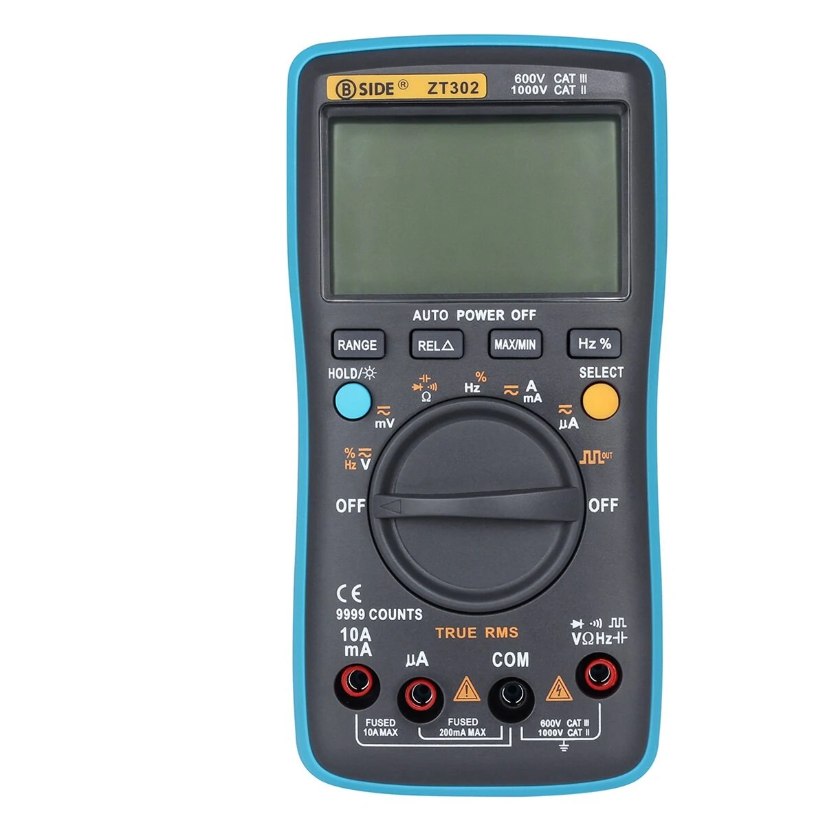 Özellikler:Taşınabilir el boyutu, taşıması kolay.Evrensel dijital multimetre, son derece faydalı ve çok yönlü.Büyük LCD ekran, okuması kolay.Güçlü anti-parazit yeteneği.15 dakika hareketsizlikten sonra otomatik kapanma.Alternatif / doğru akım, direnç, sürekli akım, diyot vb. ölçmek için kullanılır.Özellikler: DC Gerilim: 9.999mv / 99.99mV / 999.9mV / 9.999V / 99.99V / 999.9V ±(0.5%+3)AC Gerilim:9.999mv/99.99mV/999.9mV/9.999V/99.99V/750V ±(1.0%+3)DC Akımı:99.99uA/999.9uA/999.9mA/9.999A ±(1.0%+3)AC Akımı:99.99uA/999.9uA/999.9mA/9.999A ±(1,2%+3)Direniş:99.99ohm/999.9ohm/9.999kohm/99.99kohm/999.9kohm ±(0,5%+3), 9,999Mohm ±(1,5%+3)Kapasitans:10nF ±(5.0%+20) 100nF/1000nF/10uF/100uF/1000uF ±(2.0%+5), 10mF ±(5.0%+5)Sıklık: 100Hz/1000Hz/10kHz/100kHz/1000kHz/10MHz ±(0.1%+2)Görev Döngüsü:1% ~ 99% ± (0,1% + 2)9999 sayaç görüntüleme.Otomatik/Manuel ölçüm.Gerçek RMS.Veri Tutma.Siyah Işık.Düşük Batarya Göstergesi.Otomatik Kapanma.Paket içeriği: 1 x ZT302 Dijital multimetre 1 pair x Test Lideri 1 x Fermuarlı Torba1 x İngilizce Kullanım KılavuzuDetaylı Resimler: