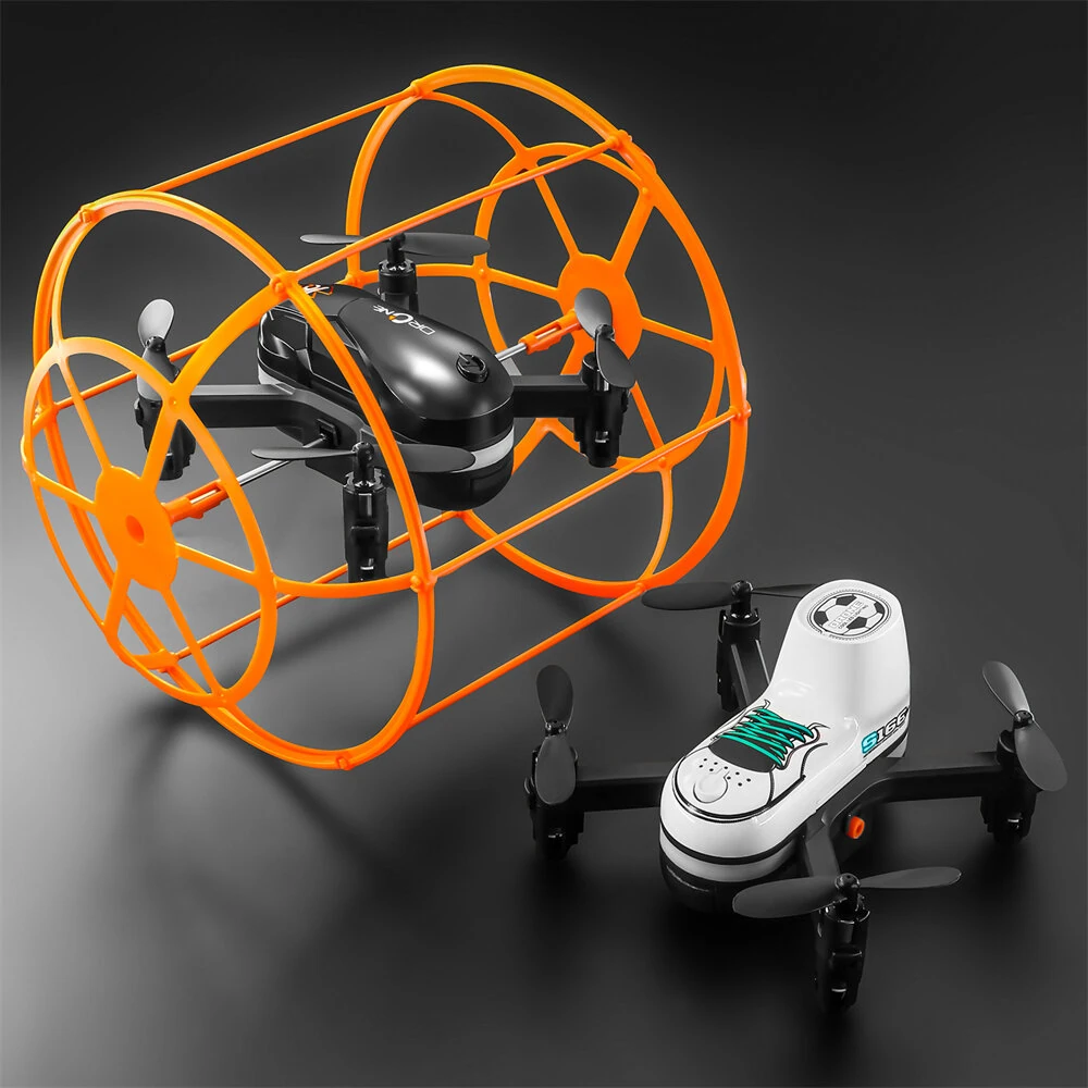 사양:브랜드 이름: YLR/C항목 번호: S166재료: ABS 플라스틱과 전자 부품색상: 검정+하양자이로: 6축주파수: 2.4G채널: 4CH모터: 7016 브러시 코어리스배터리: 3.7V 500MAH 리포 배터리 (포함)비행 시간: 약 8분충전 시간: 약 60분송신기 배터리: 3 x AAA 배터리 (포함되지 않음)제어 거리: 약 80m쿼드의 크기: 130 x 110 x 110cm쿼드의 무게: 42g (배터리 15g)패키지 크기: 20 x 14 x 13cm패키지 무게: 약 300g특징:-높이 유지 모드일정한 고도를 유지하여 안정적인 비행과 더 쉬운 조정이 가능합니다. 한 개의 키 이륙/착륙이륙 및 착륙을 위한 단일 버튼으로 작업을 단순화하여 초보자에게 특히 사용자 친화적입니다.- 상승 및 하강: 비행 중 필요에 따라 드론의 수직 움직임을 제어하여 상승 또는 하강할 수 있도록 합니다.- 앞뒤 비행: 드론이 앞으로 또는 뒤로 이동할 수 있도록 하여 다양한 방향으로 내비게이션을 용이하게 합니다.- 좌우 비행: 측면 이동을 가능하게 하여 장애물을 피하는 데 유용합니다.- 조향: 리모컨 또는 앱을 사용하여 드론의 비행 방향을 제어하는 능력을 말하며 기동성을 향상시킵니다.- 머리 없는 모드드론이 실제 진행 방향에 관계없이 방향을 유지할 수 있도록 하여 파일럿이 제어하기 쉽게 만드는 탐색을 단순화하는 모드입니다. 짧은 누름 3D 스크롤드론이 짧은 버튼 클릭을 통해 3D 기동이나 전환을 수행할 수 있게 해주는 기능을 의미하는 것으로 보입니다. 긴급 정지긴급 상황에서 드론의 비행을 즉시 중지하여 안전을 보장하고 충돌을 방지합니다. 원클릭 이륙/착륙원키 이륙/착륙 기능과 유사하게,이 기능은 이륙 또는 착륙을 위한 단일 클릭으로 쉽게 조작할 수 있도록 합니다. 짧은 누름 속도 조정파일럿이 짧은 버튼 눌림으로 드론의 비행 속도를 빠르게 조정할 수 있도록 합니다. 빛과 함께: 드론이 조명 장치가 장착되어 있어 비행 중 시인성 또는 미적 목적으로 사용할 수 있음을 나타냅니다.- 듀얼 모드드론이 서로 다른 비행 경험이나 설정을 위한 두 가지 작동 모드를 가지고 있음을 제안합니다. 벽을 오르다드론이 벽을 타고 오르거나 위로 날 수 있는 능력을 가지고 있음을 의미하며, 이는 향상된 기동성 또는 특수 디자인 기능을 나타낼 수 있습니다.기능:변장/조명 조절/DIY 조립/속도 조정/360° 보호/이중 배터리 구성/3가지 플레이 모드 (벽 오르기 + 육상 + 비행)/주요 이륙 및 착륙/높이 고정 호버링/장기 지속/묘기 굴리기/2.4G 원격 제어포함된 패키지:1 x S166 검은색 쿼드콥터1 x 흰색 외관 배터리1 x 리모컨4 x 여분의 블레이드4 x 프로펠러 가드1 x 지원 프레임1 x 제거기1 x 충전 케이블1 x 사용자 설명서