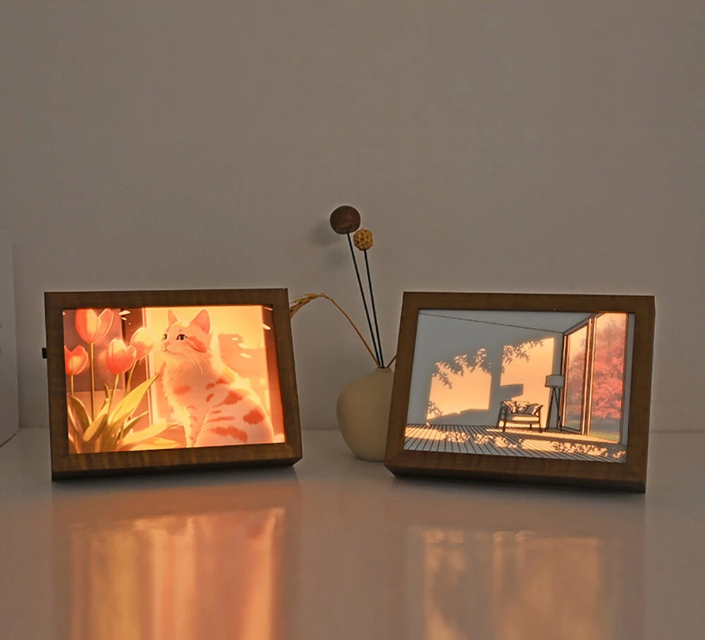 Specifications Material Wood AcrylicProduct Name Rechargeable Lighted PictureVoltage 5VLight Source LED StripCurrent 1AWattage Small 3W Large 5WDimensions Small 22 16 4 5CM Large 30 21 5 4 5CMWeight Small 0 61KG Large 0 84KGPackage Dimensions Small 25 20 5 5CM Large 33 5 24 5 5 5CMLight Color White Neutral WarmFeatures Distinctive Artwork Choose from a variety of scenes to fit your personal style and home decor from serene landscapes to playful animal themes High Quality Material The picture frame is made from real wood and acrylic ensuring durability and a sleek modern look LED Illumination Fitted with a LED strip that offers a warm inviting glow perfect for a night light or ambient room lighting Two Sizes Available Offered in both small and large sizes to fit perfectly in any space each providing a unique touch of elegance and sophistication Adaptable Light Colors Offers white neutral and warm light options allowing you to create different moods in your room or space Package Included 1x Picture Frame1x Picture1x Charging Cable