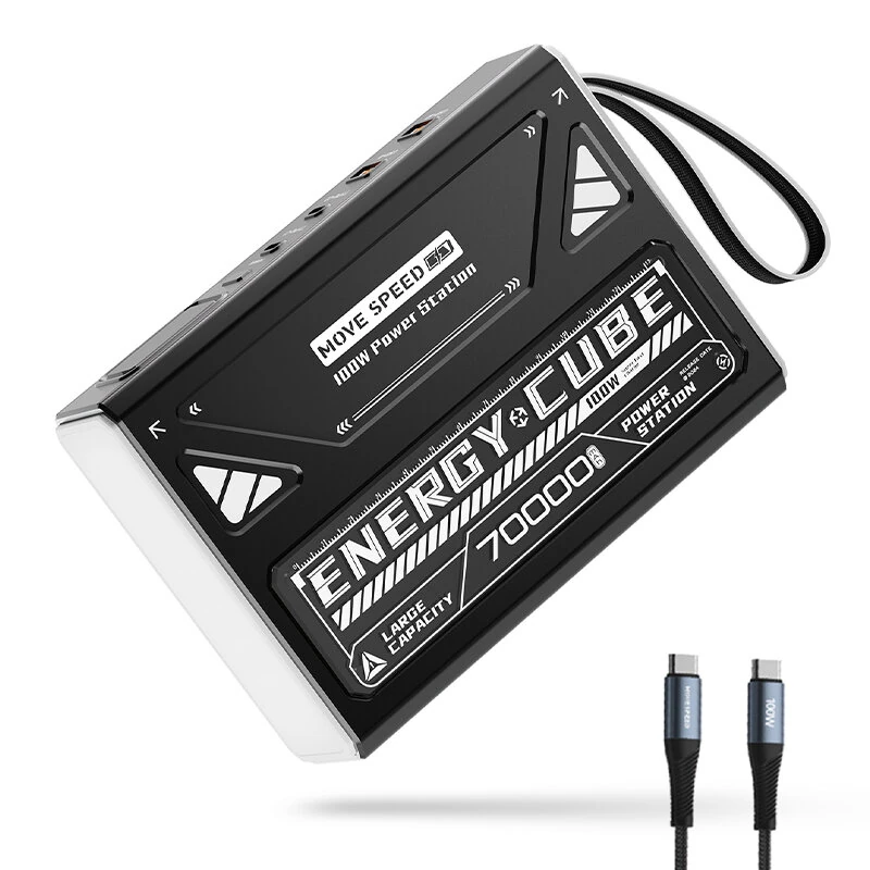 Especificaciones:MarcaVELOCIDADDEMOTILIDADModeloZ70 ProColorNegroTipo de bateríaBatería de iones de litioCapacidad70000mAh/259WhCapacidad clasificada42000mAhAhora listo para traducir el texto en inglés de la siguiente manera: """EntradaTipo-C1: 5V/3A,9V/3A,12V/3A,15V/3A,20V/3.25AType-C2: 5V/3A,9V/3A,12V/3A,15V/3A,20V/2.25AResultadoTipo-C1: 5V/3A,9V/3A,12V/3A,15V/3A,20V/5A; 100W máximoType-C2: 5V/3A,9V/3A,12V/3A,15V/3A,20V/2.25AUSB-A1/A2: 5V/3A,9V/2A,12V/2.25A. 12V/1.5ATipo-C1+C2: 65W+35WTipo-C1+(C2+A1+A2): 65W+15WPeso1.3kgTamaño163*44*115mmPoder100WCaracterísticas: 1. Alta capacidad: Con 70000mAh/259Wh,este banco de energía asegura suficiente energía de respaldo para múltiples dispositivos,incluidos teléfonos,cámaras,laptops y drones.2. Carga rápida: Equipado con dos entradas Type-C y cuatro salidas (Type-C1,Type-C2,USB-A1,USB-A2) para soportar la carga rápida en una variedad de dispositivos,con una potencia máxima de 100W.3. Salidas versátiles: Capaz de combinaciones de salida dual (Type-C1 + Type-C2,Type-C1 + C2/A1/A2),proporcionando una solución de energía flexible para varios requisitos de dispositivos.4. Linterna de emergencia SOS: Linterna con modo SOS integrado para situaciones de emergencia,añadiendo una capa extra de seguridad.5. Pantalla LCD: Pantalla LCD clara para monitorear la potencia restante,el estado de entrada/salida y la eficiencia de carga en tiempo real.Incluye:1x Banco de Energía1x Cable Type-C a Type-C1x Instrucciones1x Caja de Paquete