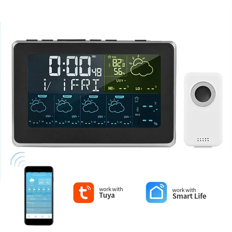 1111MicrosoftInternetExplorer402문서가 지정되지 않았습니다7.8 파운드평범한0사양:플러그: 미국/유럽 연합 (선택 사항)영구 달력: 2099년까지USB 출력 포트: 충전기용 1개습도 범위: 1%RH~99%RH (실내 및 실외)온도 측정 범위:실내: -10℃~50℃ (14℉~122℉)실외: -40℃~70℃ (-40℉~158℉)최댓값/최솟값 온도 기록: 실내 온도 및 습도전원 공급:기상 관측소: 배터리: 2 x 1.5V LR06 AA (포함되지 않음); 전원 입력: DC 5V 1A 이상 (전원 어댑터)무선 실외 센서: 배터리: 2 x LR03 AAA (포함되지 않음)재료: ABS아이템 크기: 20.5 * 13 * 3 cm (8.07 * 5.12 * 1.18 인치)항목 무게: 415g (14.64oz) 특징:1. 스마트 앱 어시스턴트: 날씨 스테이션은 WiFi 네트워크와 원활하게 연결되고 스마트 앱과 통합됩니다. 앱을 통해 네트워크 데이터를 다운로드하여 더 정확한 날씨 정보를 제공할 수 있습니다. 모든 설정은 앱을 사용하여 빠르게 구성할 수 있습니다.2.대형 컬러 스크린: 유럽 및 미국 스타일을 염두에 두고 설계된 이 기상 관측소는 포괄적인 정보를 표시하는 대형 컬러 스크린을 갖추고 있습니다. 여기에는 시간, 달력, 주, 실내/실외 온도 및 습도, 일기 예보, 예측 온도 및 UV 지수가 포함되어 있으며, 이는 지능형 기상 관측소 및 세련된 장식으로 기능합니다.3. 무선 외부 센서: 기상 관측소에는 벽에 장착하거나 테이블 위에 놓을 수 있는 무선 외부 센서가 포함되어 있습니다. 433.92MHz RF 전송 주파수와 개방된 장소에서 최대 60미터의 전송 범위를 가지고 있어 최대 세 개의 센서(패키지에 하나의 센서 포함)와 연결할 수 있습니다.4.전환 가능한 형식: 이 스테이션은 ℉ 또는 ℃의 온도 디스플레이와 12시간 또는 24시간 형식의 사용자 정의 가능한 설정을 제공합니다. 또한,5분 간격의 스누즈 기능이 있는 3개의 일일 알람이 있어 유연한 사용이 가능합니다.5. 조절 가능한 백라이트: 기상 관측소가 전원 어댑터에 연결되어 있을 때 백라이트는 계속 켜져 있습니다. 네 가지 밝기 조정 수준이 있어 다양한 조명 조건에 적합합니다. 배터리로 작동할 경우 백라이트가 15초 동안 활성화되며,계속적인 데이터 업데이트를 위해 어댑터가 권장되는 주요 전원 공급원입니다. 포함된 패키지:1 x 날씨 관측소1 x 센서1 x 전원 플러그1 x 사용자 매뉴얼