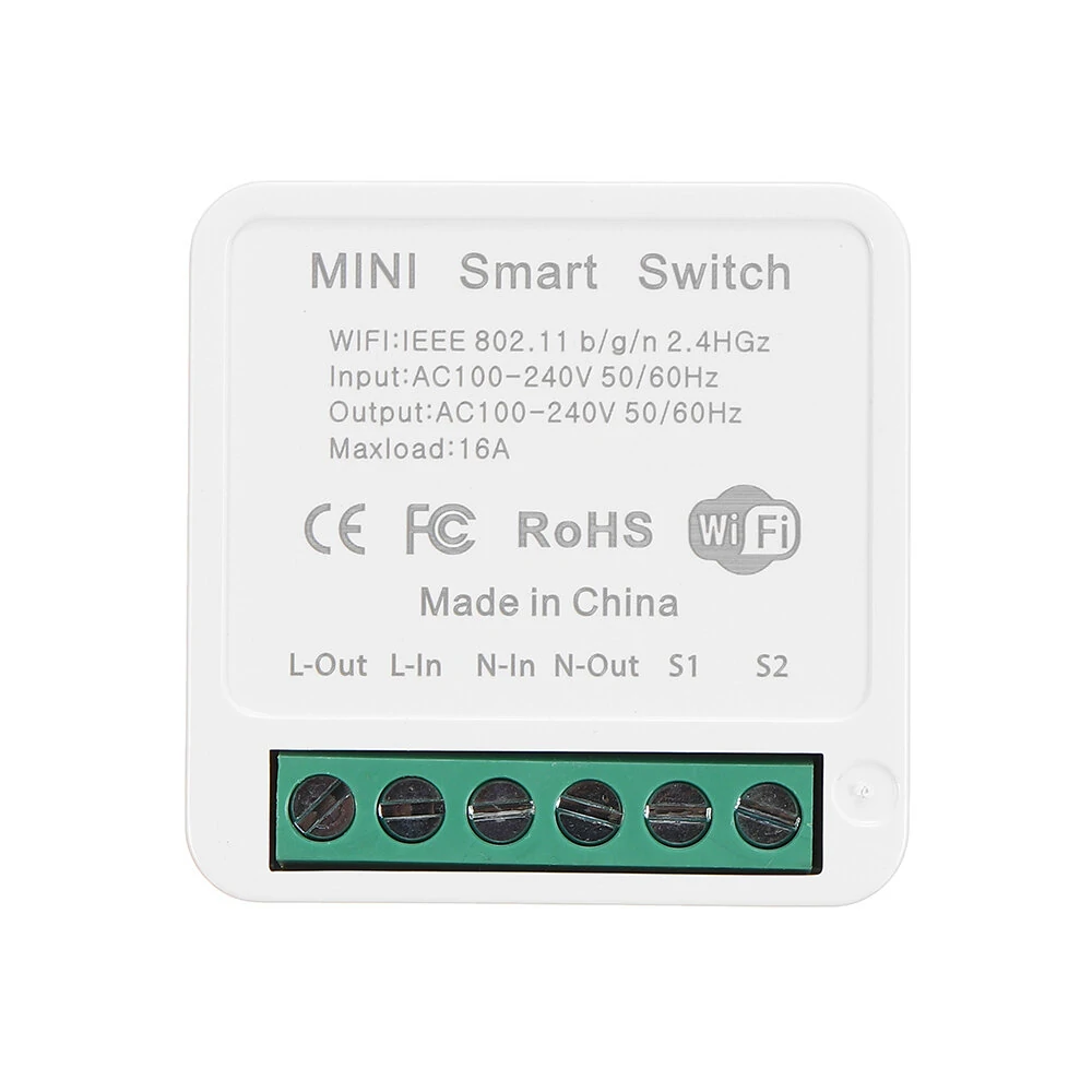 메뉴얼: 여기를 클릭하여 열기특징:미니 바디40 * 40 * 21mm 크기의 작은 바디로 설계되어 있으며, 대부분의 조명박스, 스위치 및 벽 콘센트와 호환됩니다.이는 작을 뿐만 아니라 강력합니다. 최대 전력은 1800-3450W에 도달하며 대부분의 가전제품과 조명용으로 사용할 수 있습니다.양방향 제어 지원이 스마트 DIY 스위치는 오래된 2 방향 제어 스위치에 사용할 수 있습니다. 특히, 설치한 후에도 여전히 이전 스위치를 수동으로 제어할 수 있습니다.앱 원격 제어스마트 라이프 앱을 통해 언제 어디서나 집의 조명이나 가전 제품을 원격으로 제어할 수 있습니다. 허브가 필요하지 않습니다.음성 제어와이파이 DIY 스위치는 이동 중에 간단한 음성 명령으로 가전제품을 편리하게 제어하기 위해 Alexa와 Google Home 어시스턴트와 호환됩니다.타이밍 기능가전 제품이나 조명을 자동으로 켜고 끄는 일정을 생성하세요. 에너지와 전기 요금을 절약할 수 있습니다. 릴레이 상태 설정정전에 대해 걱정하지 마세요. 전원을 켠 후 상태를 복원하도록이 스위치를 설정할 수 있습니다.그룹 제어Smart Life 앱을 통해 모든 스마트 스위치를 그룹으로 설정하세요. 그런 다음 스마트폰으로 모든 가전제품이나 조명을 원 클릭으로 켜거나 끌 수 있습니다.스마트 씬출발 모드, 홈 모드, 온도, 습도 또는 다른 환경 조건에 의해 가정용 가전제품을 켜거나 끄는 사용자 정의 장면 생성하기.포함된 패키지:1 x 16A 미니 스마트 Wifi DIY 스위치