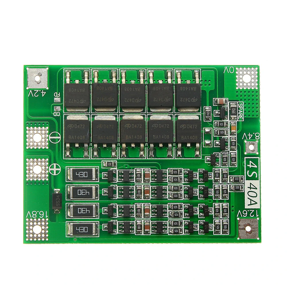 특징:4 스트링 16.8V 40A 리튬 배터리 보호 기판 (자동 복구 기능 포함-AUTO Recovery)범위: 3.6V, 3.7V 리튬 전지의 명목 전압 (18650, 26650, 폴리머 리튬 전지 포함)제품 크기: 45 * 55 * 3.4mm (표준 에디션 / 향상된 버전),46 * 60 * 3.4mm (밸런스 버전)제품 중량: 9.3g (표준 / 향상된 버전), 10.3g (균형있는 버전)충전 전압: 16.8V - 18.1V연속 방전 전류 (상한선): 40A (냉각 환경이 좋지 않으면 부하 전류를 줄이십시오)연속 충전 전류 (상한): 20A등화 버전: 시작 전류가 80A 이하이며, 135W 이하의 드릴에 적합합니다.프로젝트최소유형.맥스.단위현재 소비121824uA과충전 보호 전압4.24.254.3V균형 잡힌 시작 전압4.174.24.23V평형 전류95100105mA균형 잡힌 난방 파워1.561.721.91W과충전 복구 전압4.14.154.2V과방전 보호 전압2.42.52.6V과 방전 보호 후 과전압 보호2.833.2V과 방전 보호 후 과전압 보호3.23.53.8V과방전 복구 전압2.93.23.3V내부 저항 전도2.533.5mΩ과전류 보호 전류 C708090A과전류 지연 시간100150200밀리초연속 작동 전류04040A연속 출력 전력0672672W환경 온도-402585°C문제 해결:고장 현상고장 점검 및 원인해결책충전할 수 없음4개의 배터리 그룹의 전압을 측정합니다. 배터리 전압 중 하나가 4.25V를 초과하면 보호 보드가 과충전 보호를 활성화합니다.배터리 팩을 잘 연결하고, 좋은 배터리와 나쁜 배터리를 섞지 마십시오.방출할 수 없음4개 배터리 그룹의 전압을 측정합니다. 배터리 중 하나의 전압이 2.7V보다 낮으면 보호 회로가 과방전 보호를 활성화합니다.배터리 팩을 잘 연결하고, 좋은 배터리와 나쁜 배터리를 섞지 마십시오.충전/방전 실패0V, 4.2V, 8.4V, 12.6V, 16.8V 잘못 연결됨새로운 보드를 재배선하거나 교체하십시오 (인간의 실수,보증 없음)과충전/과방전 실패0V, 4.2V, 8.4V, 12.6V, 16.8V 잘못 연결됨새로운 보드를 재배선하거나 교체하십시오 (인간의 실수,보증 없음)방전 보호배터리 팩이 충분한 방전 능력을 가지고 있는지 확인하고, 부하의 기동 전류가 보호 보드의 과전류 보호 전류를 초과하는지 확인하세요.방전 용량이 더 높은 배터리 팩 또는 더 큰 전류(슈퍼 작업 범위)를 가진 보호판으로 교체하십시오구성품 납땜구성 요소 중 하나와 PCB 패드 사이에 연결이 없습니다.수리 용접구성 요소 용접부품의 두 개 이상의 핀 사이에 단락이 있습니다.구성 요소를 제거하고 다시 용접하십시오정전기 파괴 A전원이 꺼진 상태에서 MOSFET의 G,D,S 핀을 측정합니다. 두 핀의 정방향 및 역방향 저항이 0Ω이면,이는 고장이 났음을 나타냅니다.교체용 MOS 튜브를 제거하세요정전기 붕괴 BMOS 튜브를 제거하고 MOS 튜브의 G 및 D,G 및 S 극의 저항을 측정합니다. 고장났음을 나타내는 저항이 있다면 저항은 무한해야