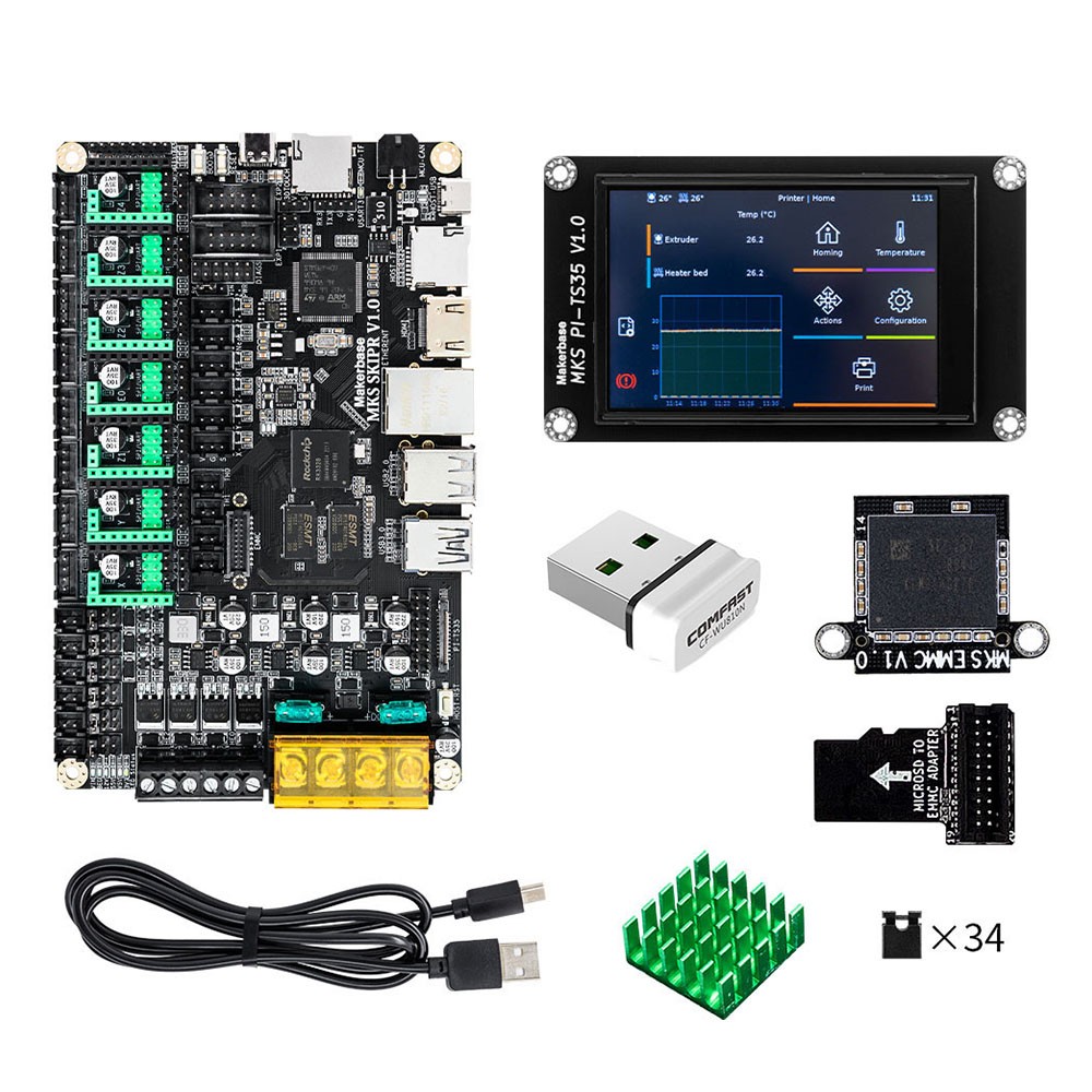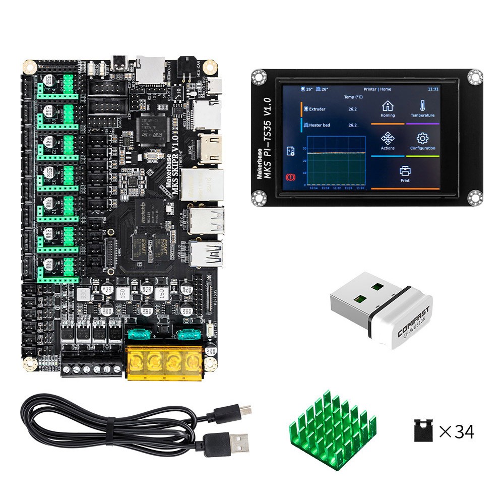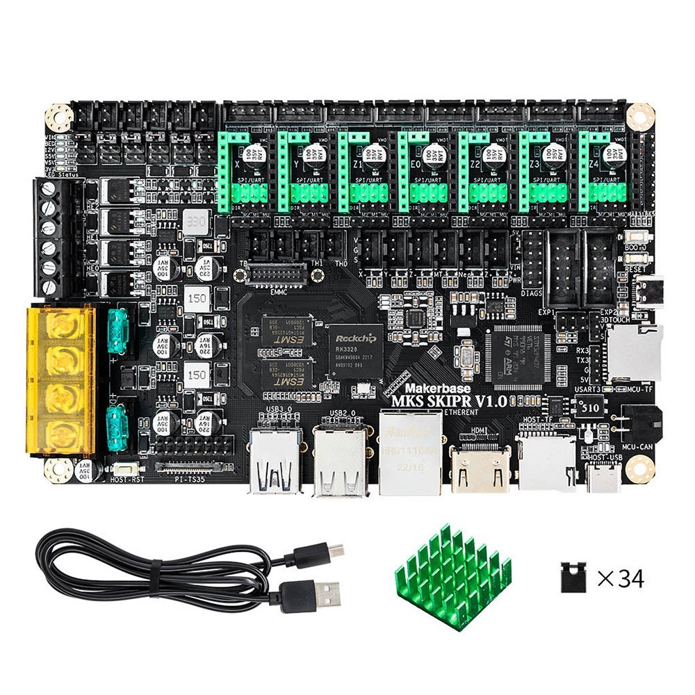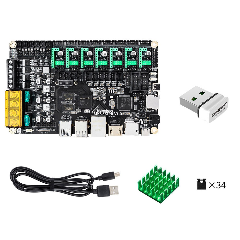Perfekter Betrieb des Klipper-HostsMKS SKIPR ist eine von Makerbase eingeführte All-in-One-Platine zum Betrieb von Klipper. Sie integriert den SOC, auf dem der Klipper-Host läuft, und die MCU, die für die Ausführung bestimmter Maschinenaktionen verantwortlich ist. Es ist für die meisten 3D-Drucker geeignet. SOC verwendet Rockchips 4-Core Cortex-A53-Architektur RK3328 mit Armbian-System, worauf der Klipper-Host perfekt läuft. MCU verwendet STM32F407VET6 mit Cortex-M4-Architektur, 168 MHz Hauptfrequenz, einfache Steuerung verschiedener Maschinenaktionen. Umfangreiche Schnittstellen Behalten Sie die umfangreichen Schnittstellenressourcen von MKS PI bei: mit 1 GByte DDR3-Speicher, Unterstützung für HDMI-Bildschirmschnittstelle, PI-TS35-Bildschirmschnittstelle, kabelgebundenem Ethernet-Anschluss und 3-Wege-USB-Schnittstelle (kann extern an die Hauptsteuerplatine, USB-Drahtlosnetzwerkkarte, USB-Kamera, U-Disk, USB-Tastatur und -Maus usw. angeschlossen werden). Steuerbare Lüfter und sicherer Schutz Mit 3-Wege-steuerbaren Lüftern und 3-Wege-Schließerausgang können VIN, 12 V oder 5 V Spannung unabhängig voneinander ausgewählt werden. Ausgestattet mit Schottky-Diodenschutz für MOS-Schaltkreise und Temperaturmessschaltungen. Entwickelt mit der Gegen-EMK-Energieabsorptionsschaltung zum Schutz des Schrittmotortreibermoduls. Darüber hinaus kann die Z+-Schnittstelle die Spannungsauswahl unabhängig einstellen, um sie an verschiedene PROBE-Modelle anzupassen. Weitere Funktionen: Unterstützt das Booten des Systems von der TF-Karte und dem EMMC-Modul (das EMMC-Modul ist stabiler als die TF-Karte und hat eine schnellere Lese- und Schreibgeschwindigkeit); unterstützt 7-Achsen-Schrittmotorantrieb, um die Anforderungen der meisten 3D-Druckermodelle zu erfüllen; 3 unabhängige MP1584PEN DC/DC-Module bieten eine starke Garantie für den stabilen Betrieb der gesamten Platinenschaltung.