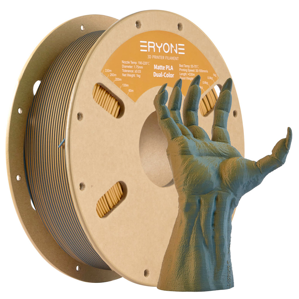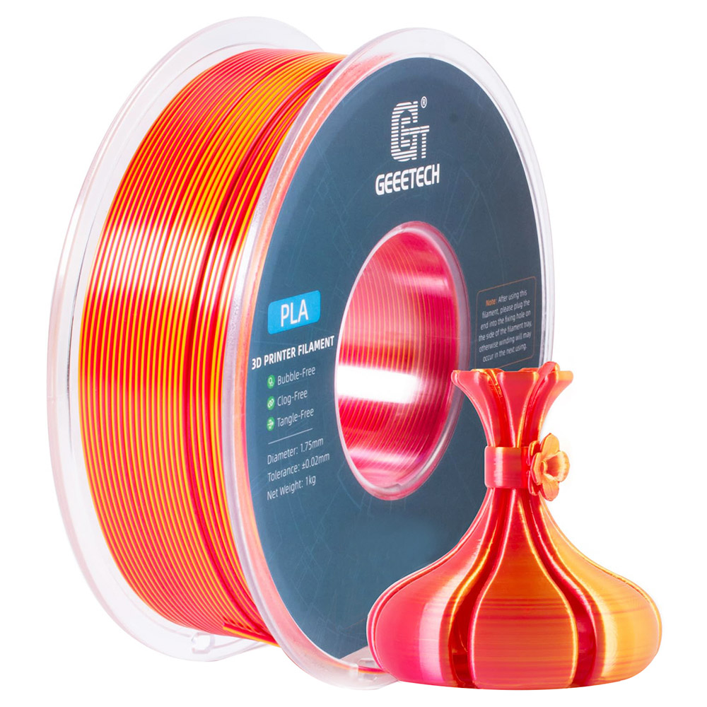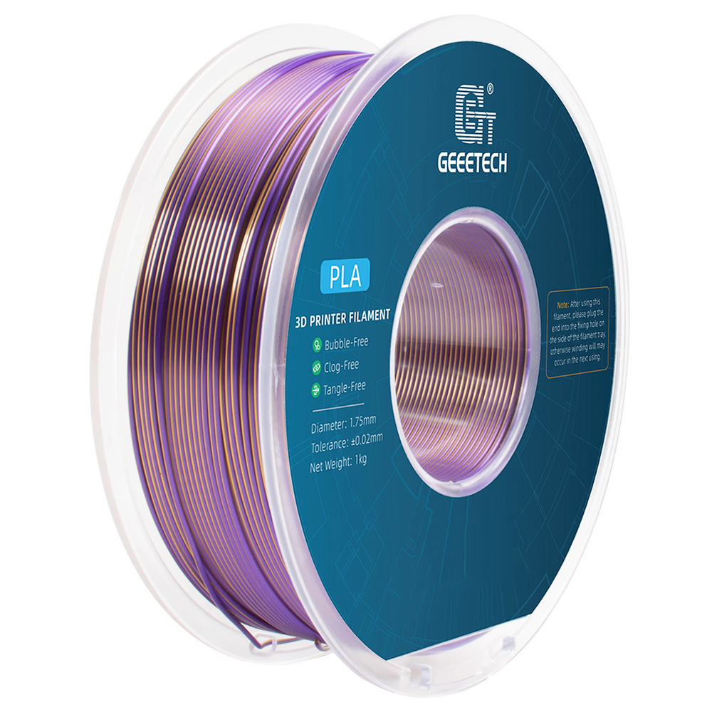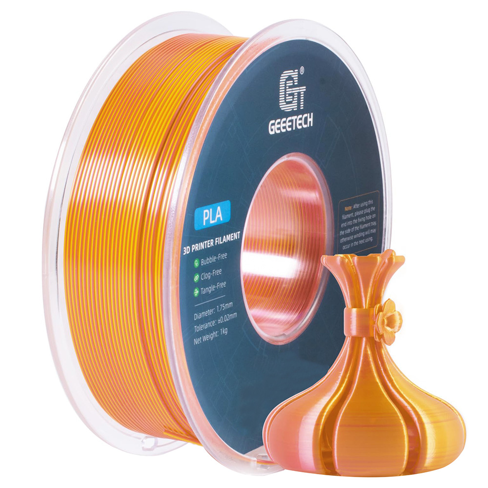 Zweifarbiges Silk PLA-Filament. Erstaunliches PLA-Filament, Sie erhalten problemlos zwei Farben, selbst für kleine Drucke. Verschiedene Modelle bieten unterschiedliche Effekte. Geeetech Silk PLA hat eine sehr glatte Oberfläche, ist hell und schillernd, schwarze und helle Farben prallen aufeinander, voller Textur, verwenden Sie es, um Ihre 3D-Druckreise zu beginnen. Reibungsloser Druck, hervorragende Qualität. Das zweifarbige Silk PLA-Filament weist keine Verstopfungen, keine Blasen und keine Verwicklungen auf. Ein Durchmesser von 1,75 mm mit einer Präzisionstoleranz von +/- 0,02 mm sorgt für reibungslose und qualitativ hochwertige 3D-Drucke. Außergewöhnliche Zähigkeit sorgt für stabilen und unterbrechungsfreien Druck und liefert Ergebnisse von hervorragender Qualität. Breite Kompatibilität, vielseitige Verwendung. Einfach für Anfänger und kompatibel mit den meisten 3D-Druckern und 3D-Stiften. Außergewöhnliche Druckergebnisse mühelos. Genießen Sie ein nahtloses Druckerlebnis mit zweifarbigem Silk PLA-Filament. Vakuumversiegelte Verpackung. Das PLA-Filament verfügt über eine professionelle vakuumversiegelte Verpackung mit einem Trockenmittel für Haltbarkeit.
