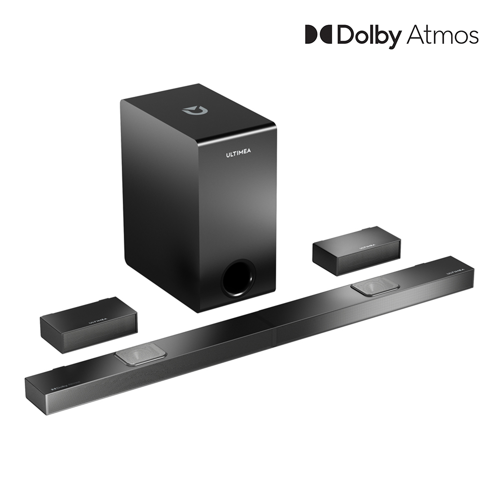 360°-Raumklang mit 5.1.2 Dolby Atmos5.1.2-Kanal-Soundbar umhüllt Ihren Raum, steigert Ihr Audioerlebnis mit Präzision in allen Dimensionen (Dolby Atmos 5.1.2-zertifiziert). Mit 2 nach oben gerichteten Treibern und 2 hinteren Surround-Lautsprechern. Dolby Atmos liefert einen realistischeren und umfassenderen Surround-Sound, der Sie ins Herz Ihrer Unterhaltung versetzt. (Hinweis: Nova S80 unterstützt keine Dekodierung von DTS)360°-ASL-Aural Spatial Localization TechnologyOrtung von Tonquellen mit 360°-Präzision, auch von oben. Ultimea nutzt die Prinzipien der sphärischen Schallfeldwiedergabe und präsentiert dem Publikum Audio dreidimensional, sodass es Tonquellen aus der Ferne, aus der Nähe oder aus jeder Richtung wahrnehmen kann. Echtzeit-Positionierungstechnologie mit integriertem DSP und Algorithmen analysiert Audiosignale, um jedes Objekt räumlich genau zu positionieren und so ein beeindruckendes 360°-Klangerlebnis zu erzeugen.2 nach oben gerichtete Treiber für Höhenanhebung2 nach oben gerichtete Treiber leiten den Klang nach oben und werden von der Decke reflektiert, um einen unglaublich lebensechten Overhead-Sound zu erzeugen. Zusammen mit 2 hinteren Surround-Lautsprechern orchestrieren sie nahtlos 360°-Sound und heben Ihr Klangerlebnis mit Präzision in alle Dimensionen.4K HDR-Pass-throughDie 4K-HDR-Kompatibilität bietet eine bemerkenswerte Farbpalette, schärfere Kontraste und eine unglaubliche Helligkeit. Die nahtlose Integration von 4K HDR und Dolby Atmos erreicht ein wahrhaft filmisches audiovisuelles Fest und bietet den höchsten Standard der Heimkinowiedergabe, der derzeit auf dem Markt erhältlich ist.8'' kabelloser Jumbo-SubwooferEin fortschrittliches Magnetkreissystem kombiniert mit einer ultraleichten und hochfesten, umweltfreundlichen Strukturmembran kann eine ultralange Membranauslenkung von 21 mm erzeugen. Verbessert durch die BassMAX-Technologie von Ultimea liefert es einen kraftvollen und donnernden Basseffekt.