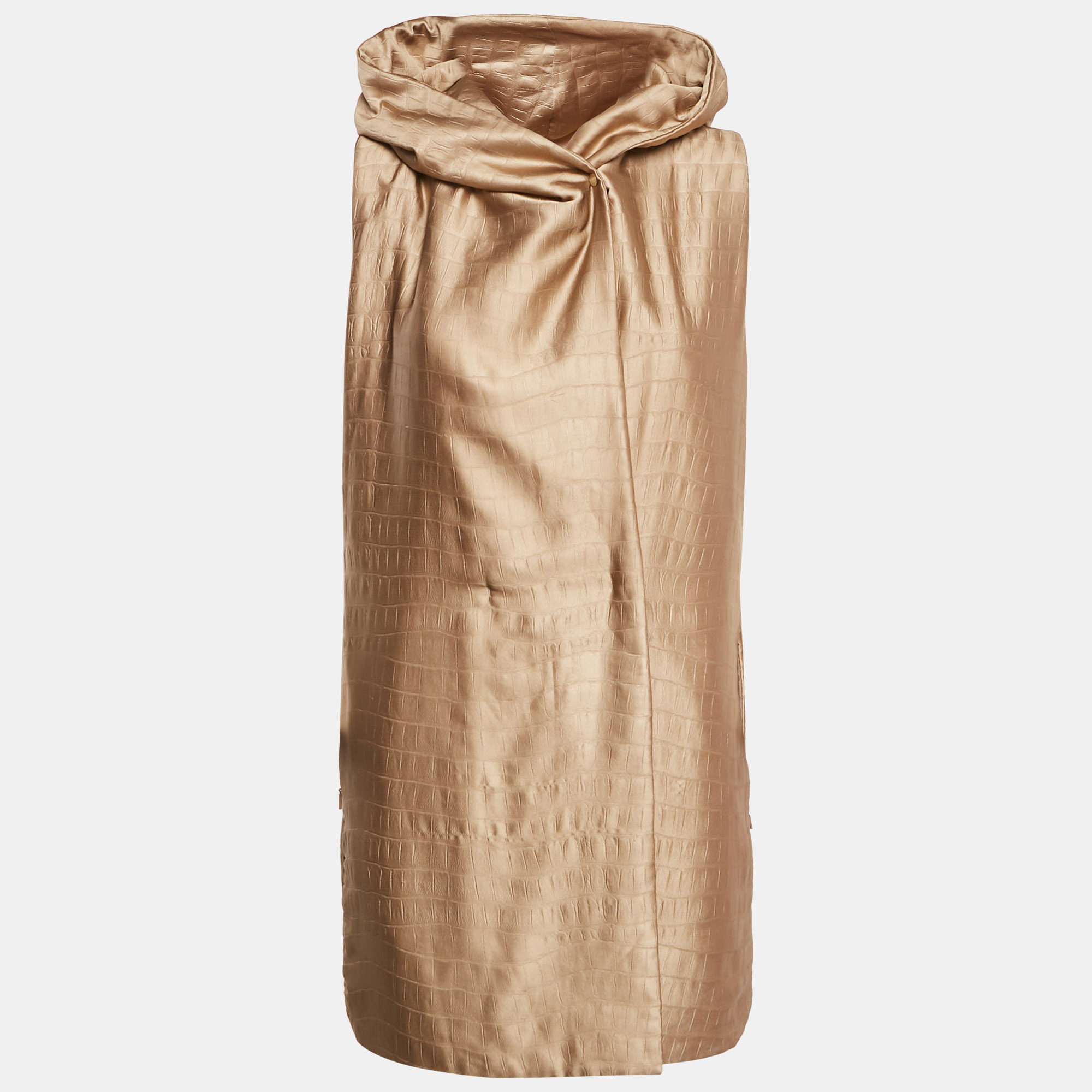 Max Mara’s Uguale coat brings together a sleeveless silhouette and hooded structure in beige textured satin. Designed with a utilitarian feel and minimalist elegance, it layers beautifully over knits or slim tailoring. A refined transitional piece with city ready versatility and a subtle, fashion forward edge.