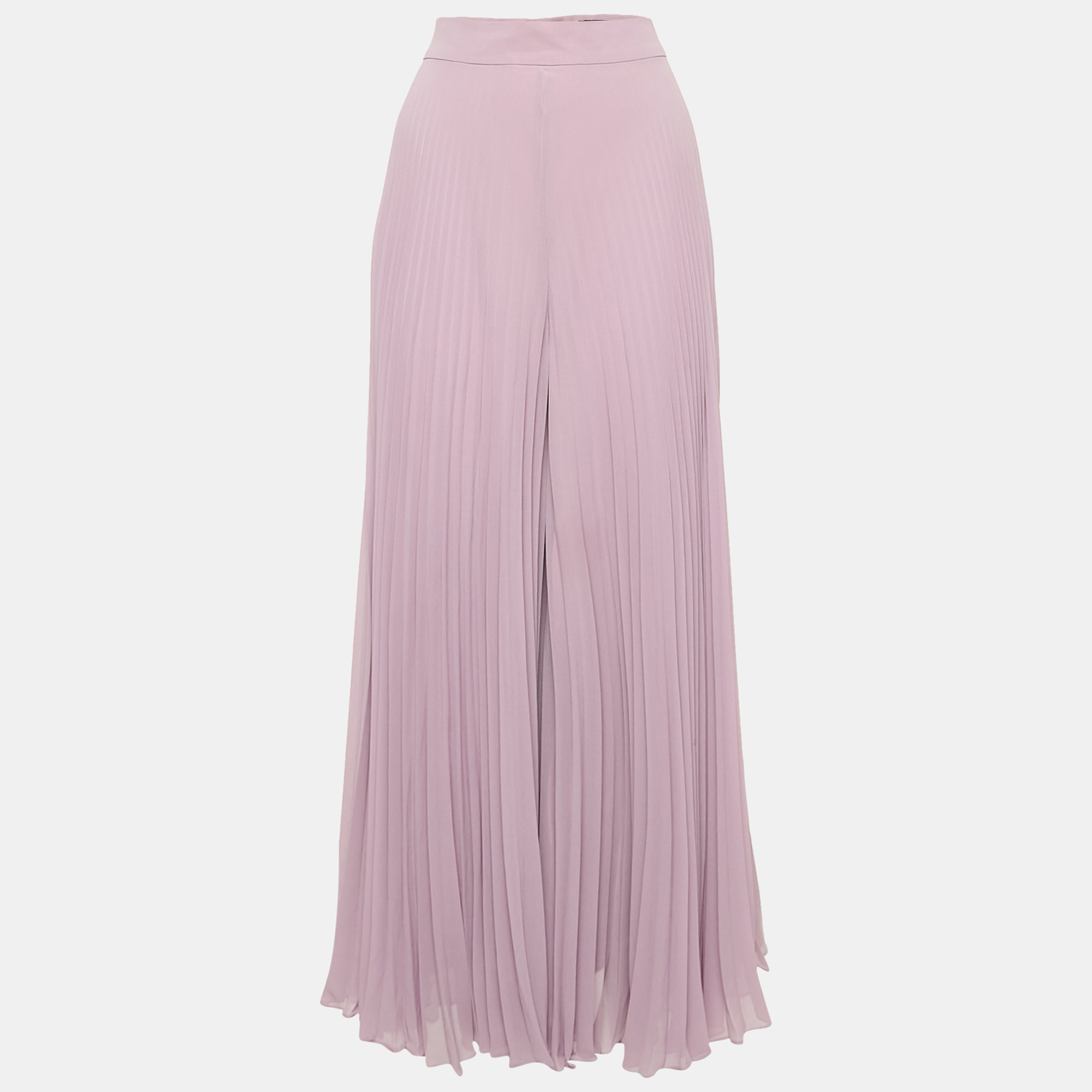 Max Mara’s purple chiffon trousers feature a plissé finish and flared silhouette for graceful movement. Airy and refined, they’re perfect for resort wear or formal daytime events. Pair with tonal tops or simple blouses for a cohesive, elegant look.