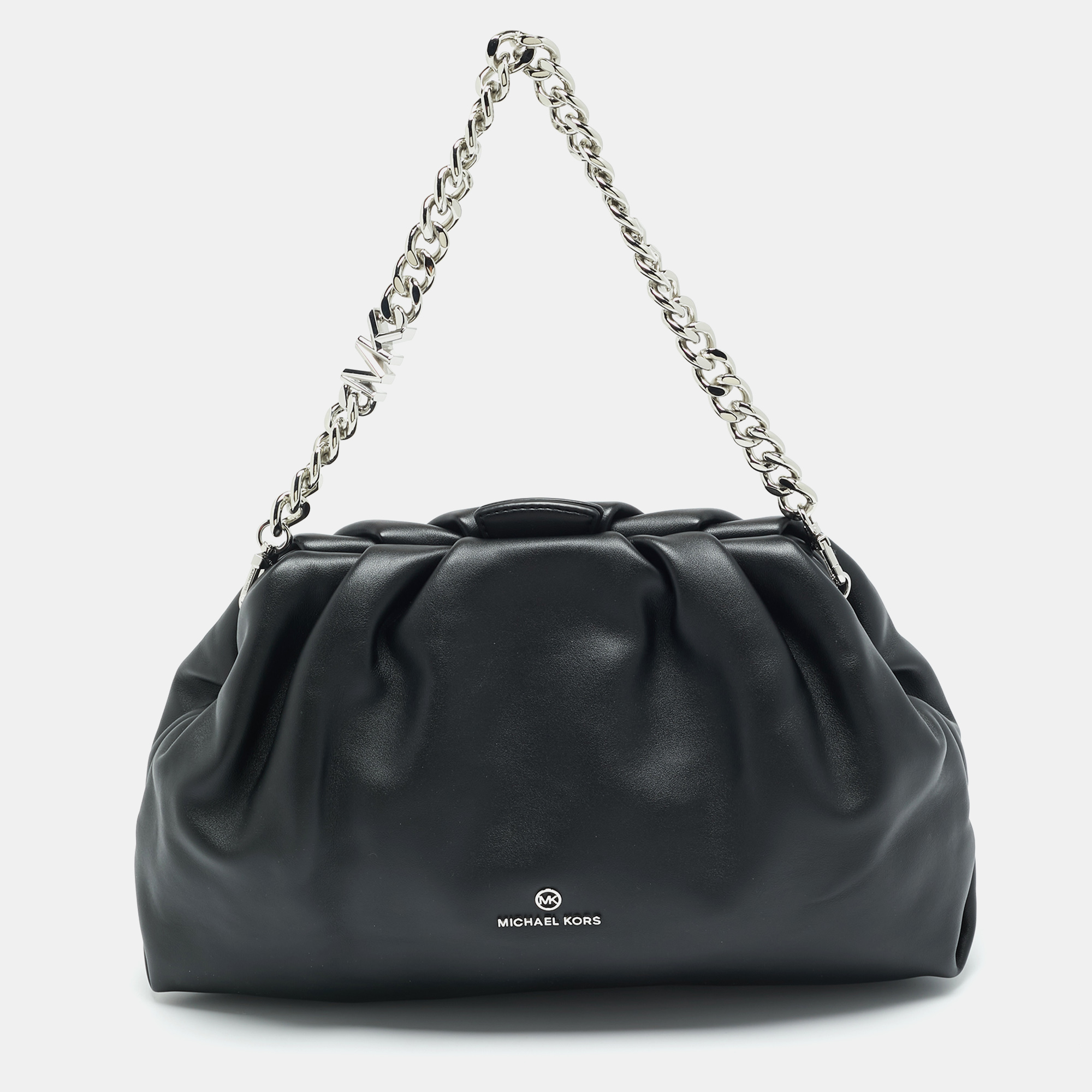 Michael Kors introduces a versatile option with the Nola crossbody, crafted from black leather with a smooth, polished finish. The convertible strap makes it easy to switch between shoulder and hands free styling. A compact interior keeps essentials organized, making it a practical everyday accessory for both casual and refined outfits.