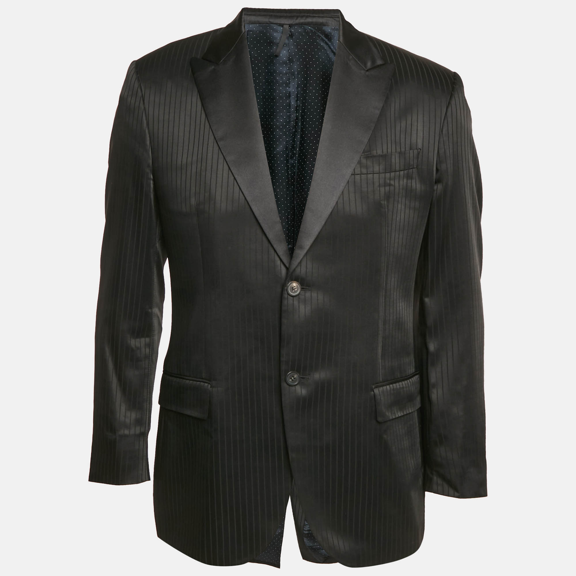 Givenchy’s single breasted blazer is made from a black wool blend with subtle stripe detailing. Tailored and structured, it’s a refined layer for business or evening edits. Pair with tonal separates for a sharp, sophisticated look.