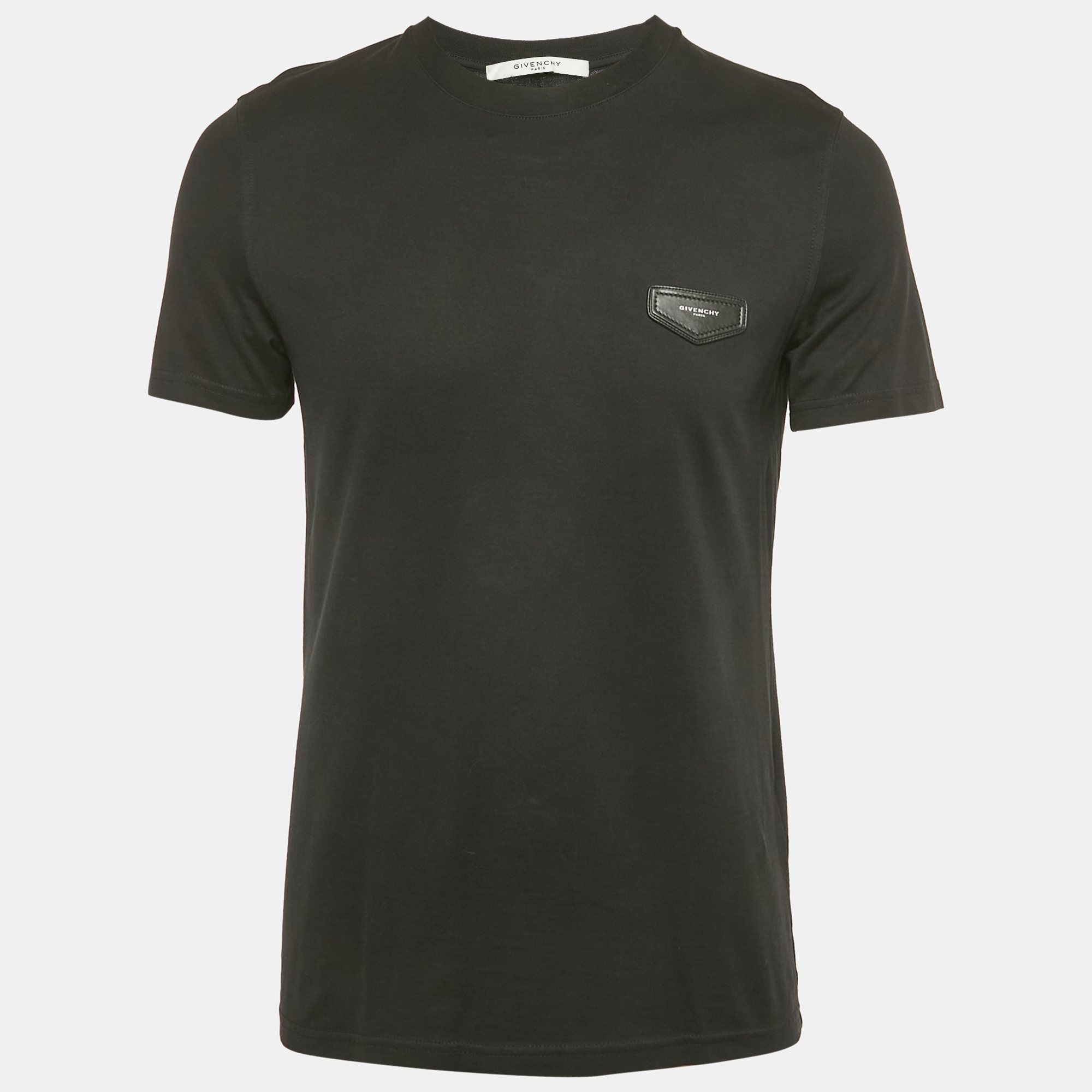 Crafted in smooth jersey, this Givenchy crewneck tee features striking black leather appliqué detailing. The contrast of textures adds depth to the minimalist design, bringing an urban luxury edge to off duty staples or elevated streetwear layering.