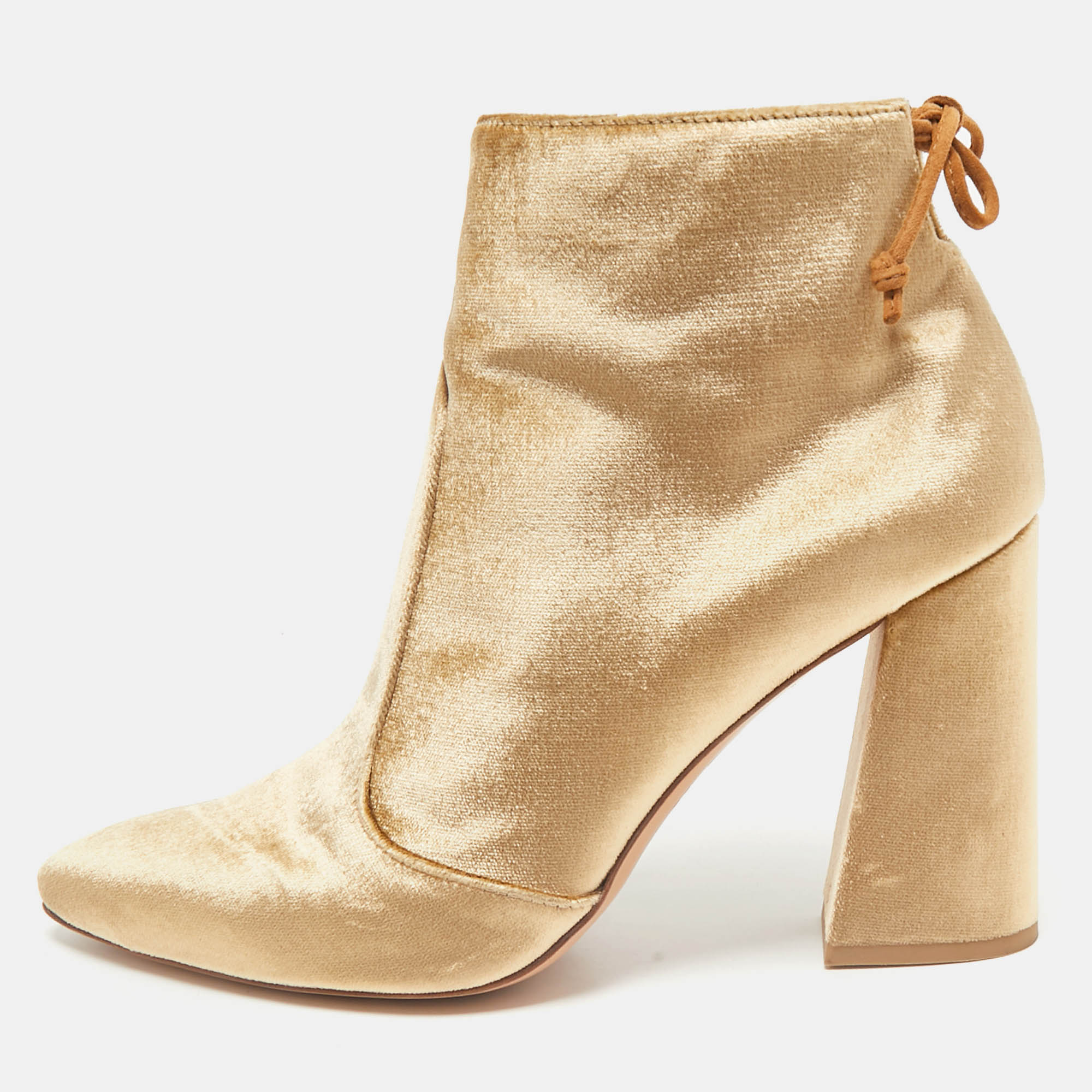 Refined with a hint of drama, these Stuart Weitzman ankle boots are crafted in plush beige velvet with a sharp pointed toe and sculptural heel. The luxe texture and modern silhouette make them a statement piece for both day and evening wear.