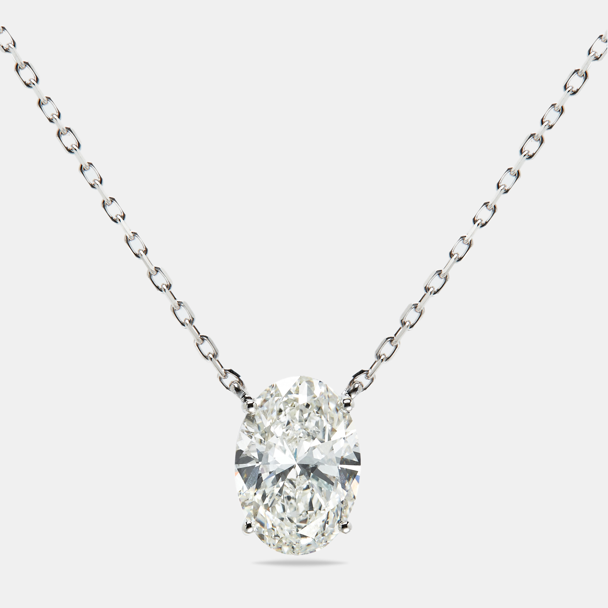 This oval brilliant cut lab grown diamond necklace offers soft sparkle and timeless simplicity. The diamond’s clean lines and high clarity are framed in a fine 18k white gold chain—a piece fit for every day.